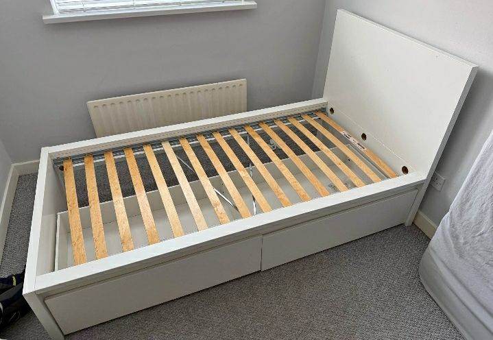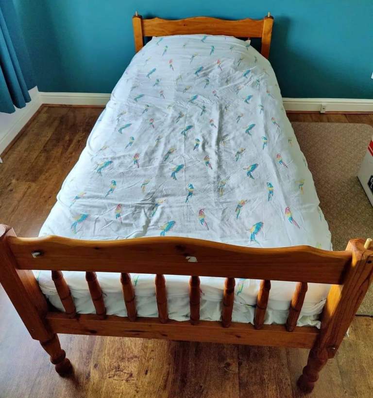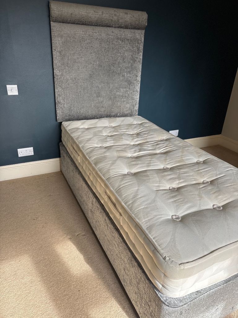 Posting for 13+ yearsSingle Bed with Grey Tall Headboard