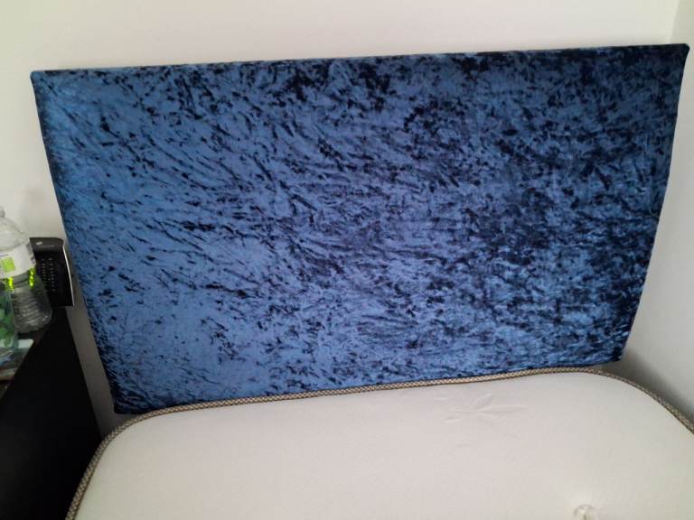 Comes with beautiful plush velvet headboard in blue, and 2 storage drawers.
