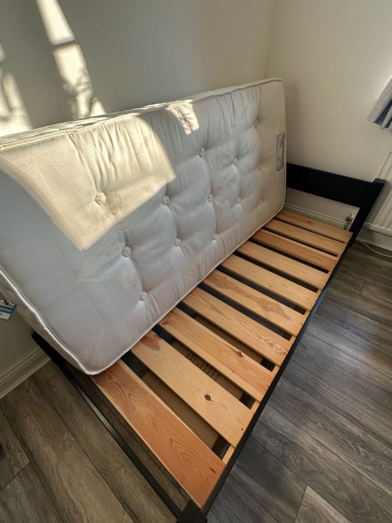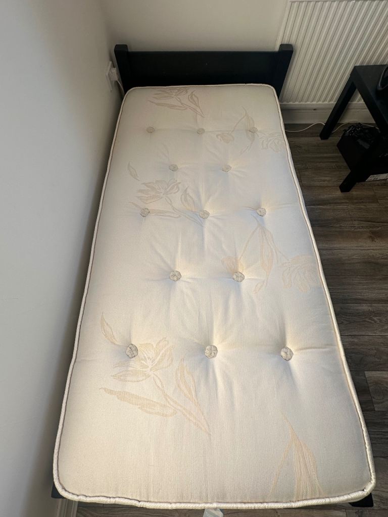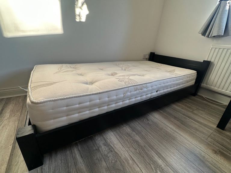 Posting for 2+ monthsSingle Bed with Mattress - Black Oak Wood Frame
