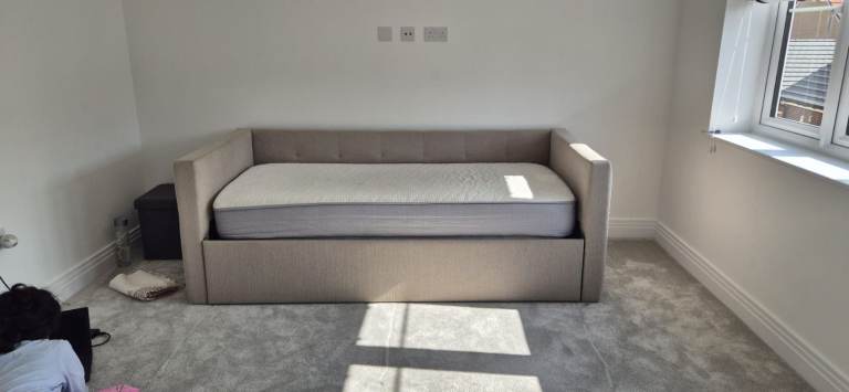 Single Bed with Pull-Out Trundle & 2 Mattresses – Excellent Condition - ono