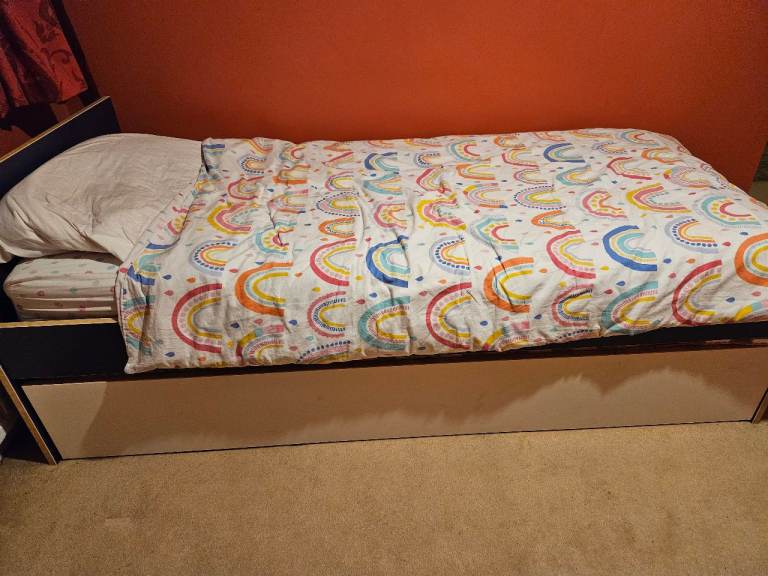 Single bed with matching headboard,two drawers good quaality mattress. Almost new ,only used once.Cost £269 ,00 3 months ago
