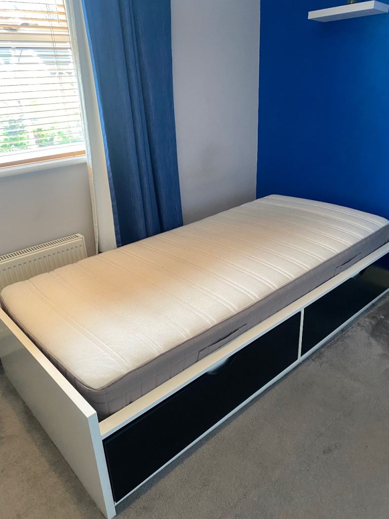 Single bed used just for grandson on a few occasions. Grey divan velvet base. Free to anyone pick up only. Needs gone by end of week or off to the skip.