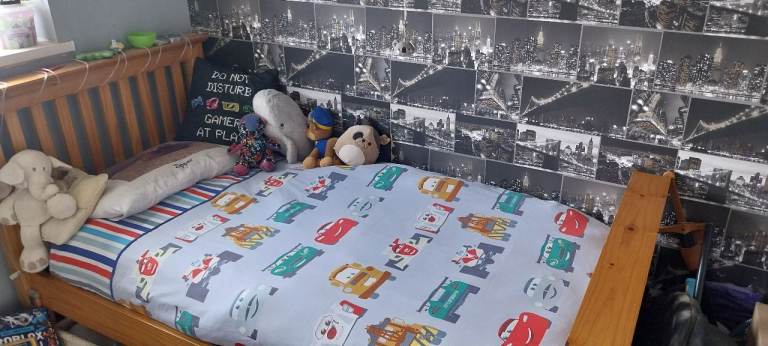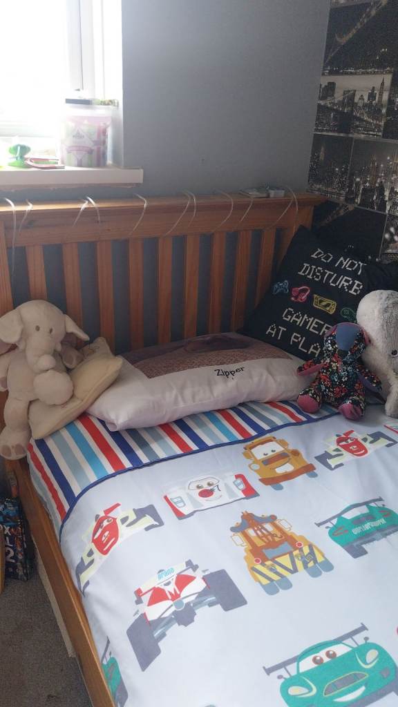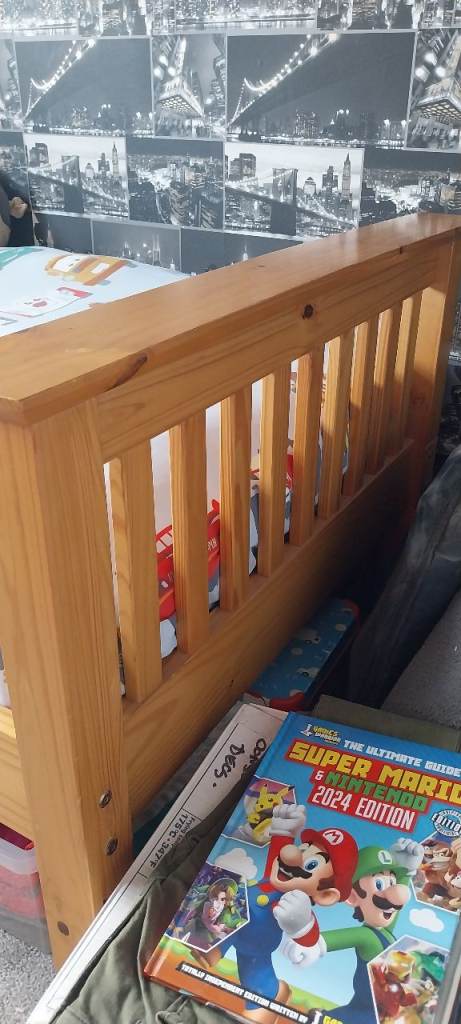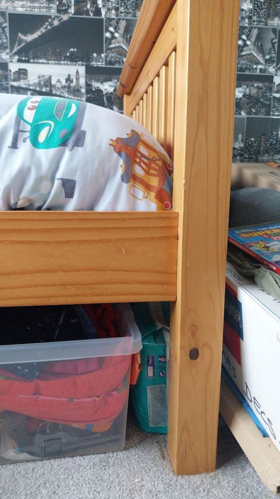 Fantastic solid pine bed for sale. Really sturdy piece of furniture, so much life left in it. Sad to see it go but my youngest is moving into a double bed now. No mattress.