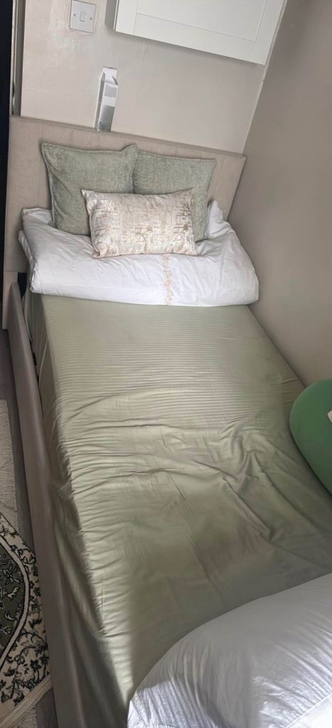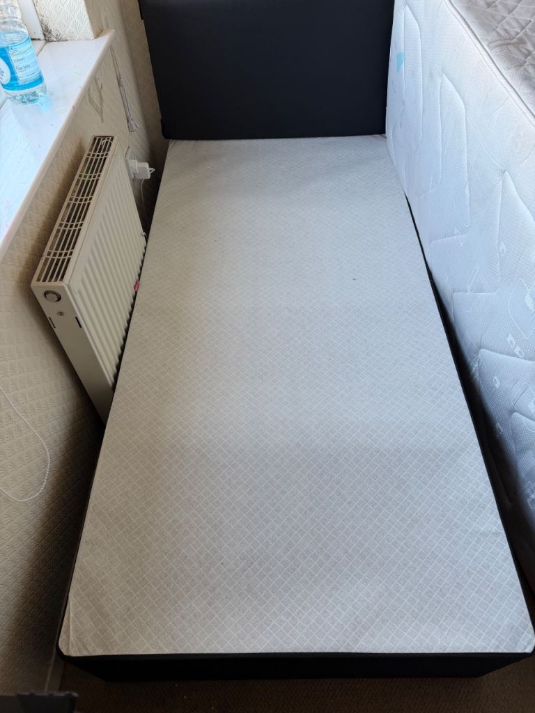 Urgent sale: Single bed with mattress in good condition available immediately. Ready for quick pickup. DM if interested.