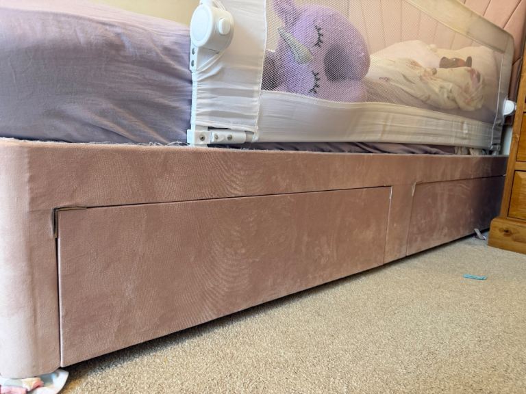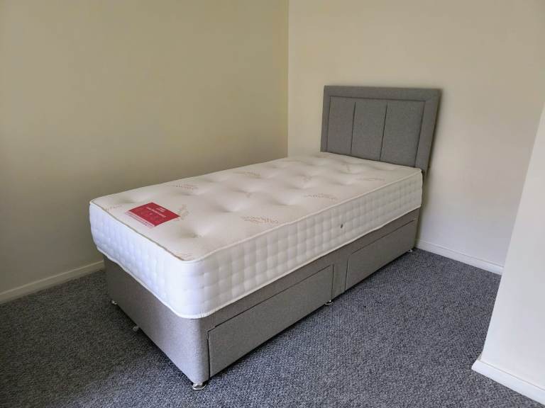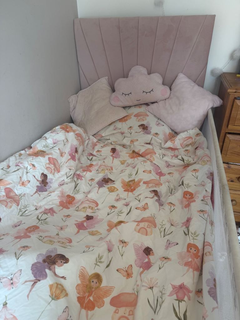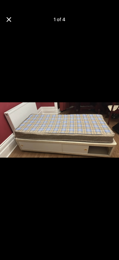 Single divan bed and mattress , only had for just over a year, the base does have a slight hole in ( can get pictures ) it was from where my daughter pushed the bed guard in, but does not effect use at all, lovely bed and comfortable mattress , 2 draws , only selling due to getting her a double bed as she prefers more space , sensible offers , collection only canterbury