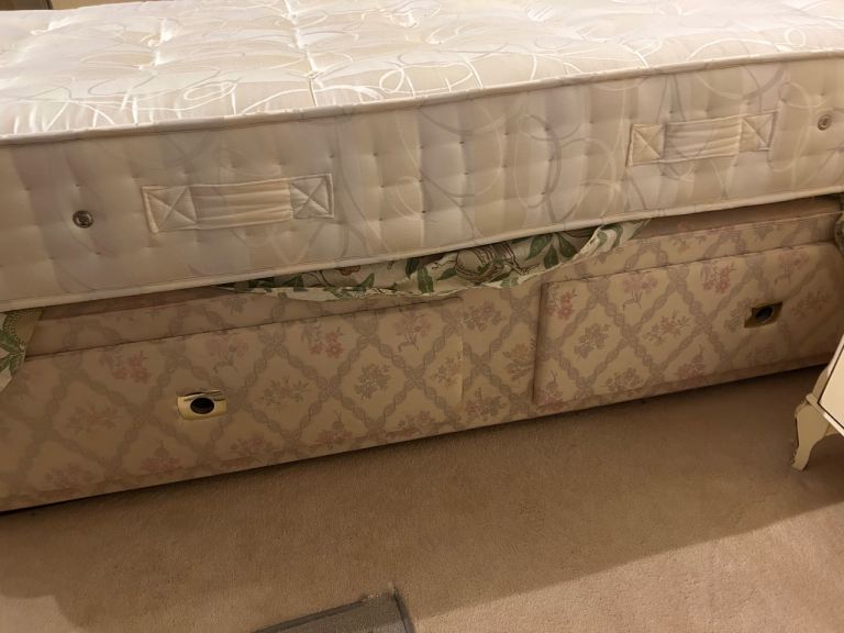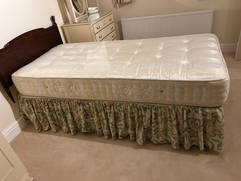 A lovely hardly used divan bed. Single bed with two draws and brand new mattress. Comes with a mahogany headboard.
