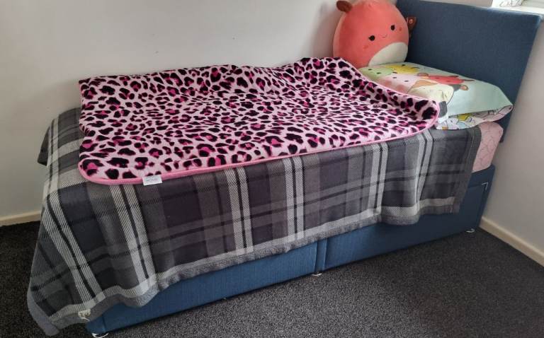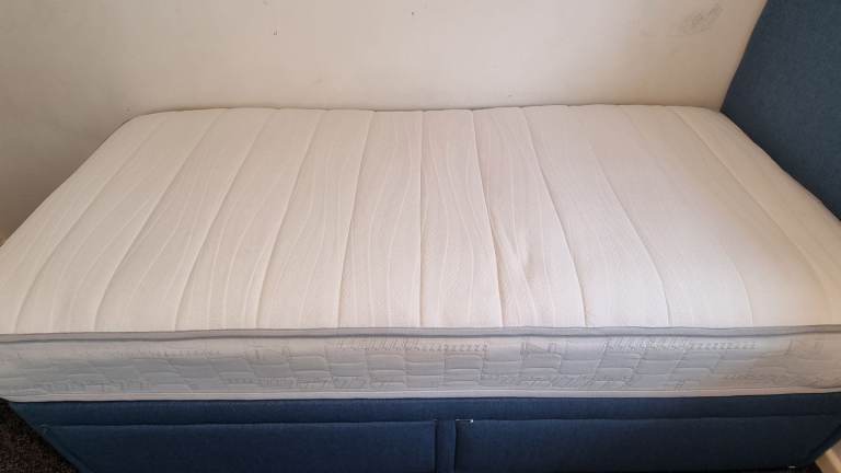Selling single divan bed, with matching headboard and quality mattress. Perfect for a kid or teen bed. Open to sensible offers. Seliing 3 matching beds in total.