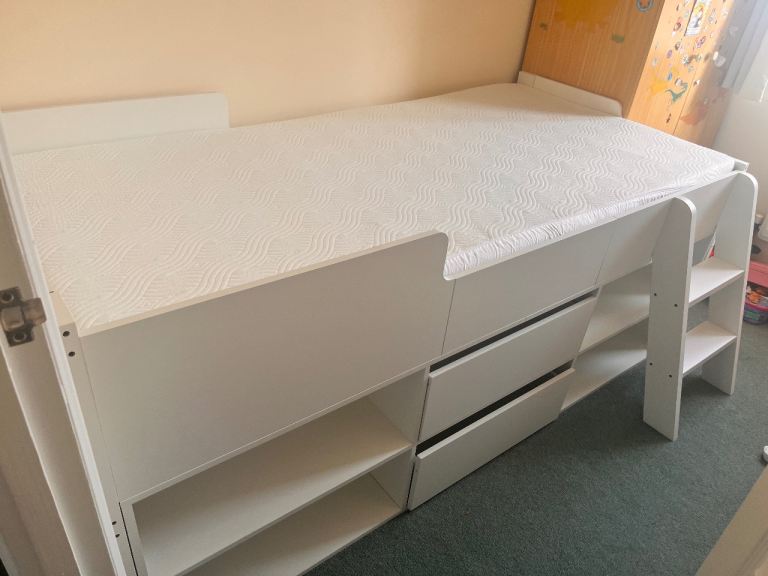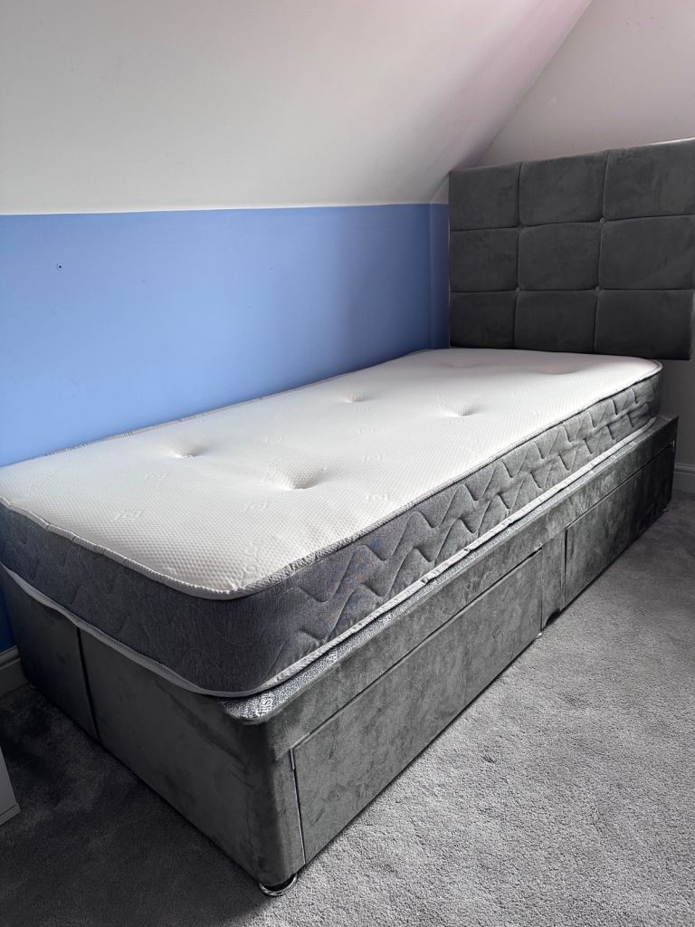 Single divan bed, two drawers, headboard and mattress.