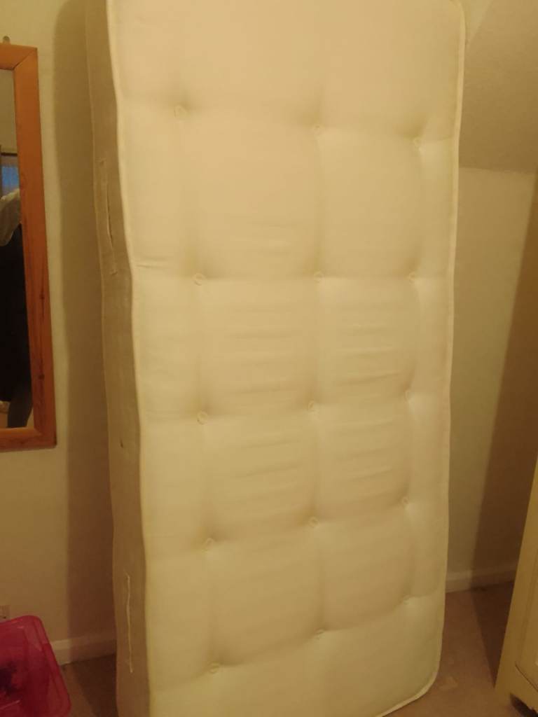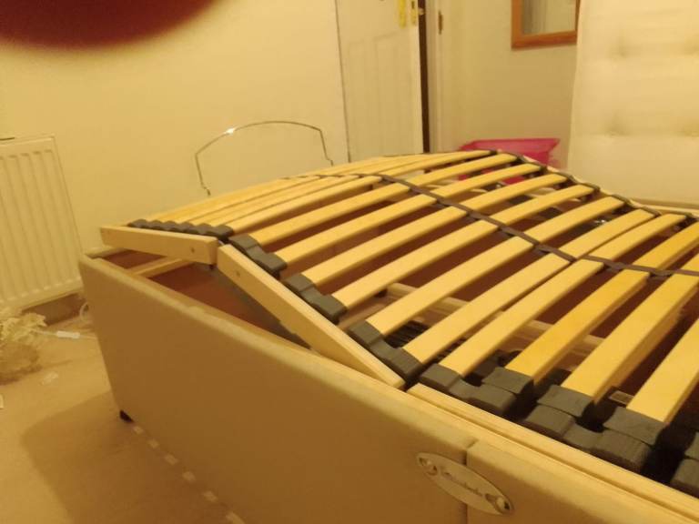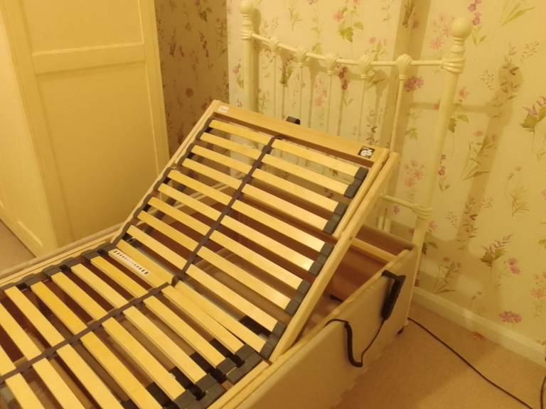 Single Electric Bed. Excellent condition, as only been used twice. Can sell with mattress or without. Also has a metal cream headboard. Can help with delivery if local.