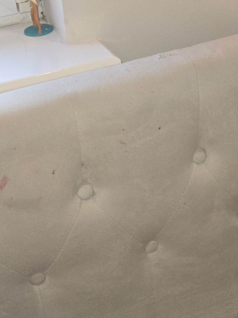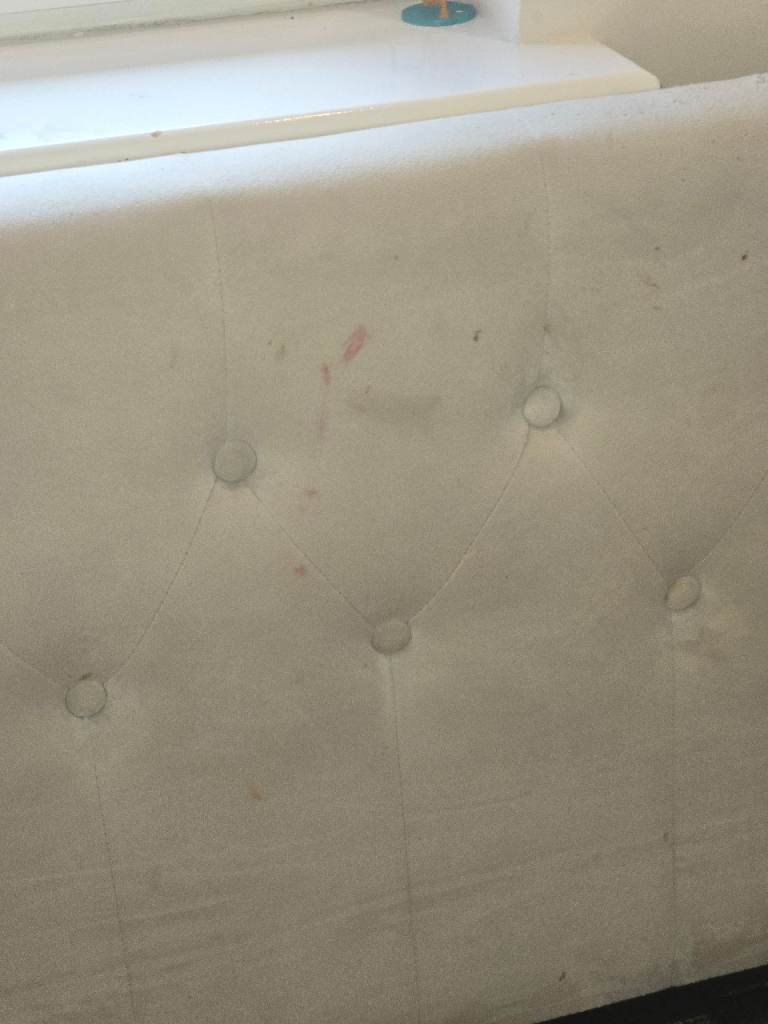 There are a few marks that would probably wipe off but price reflects this, there are also claw marks as shown from our previous cat, really they are not that noticeable and the bed is still fully functioning. There is one slat missing from the trundle, it from the bottom so again doesn't effect the function and could easily be replaced.