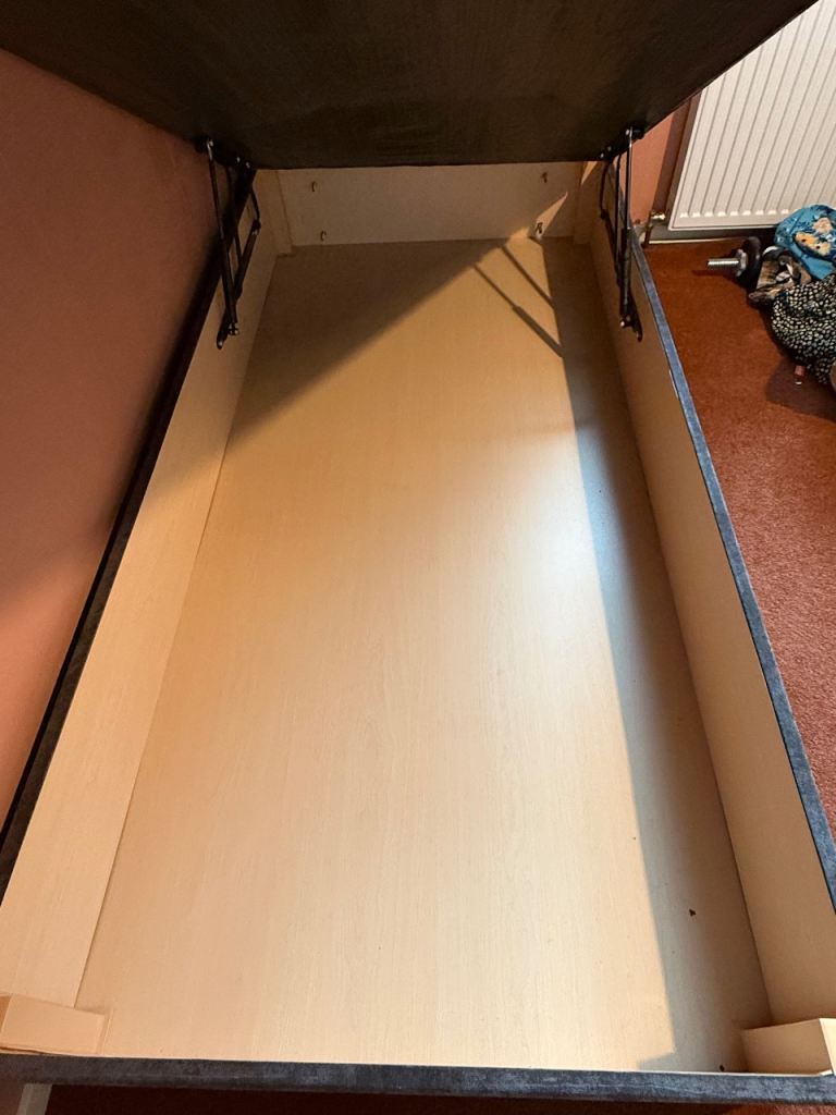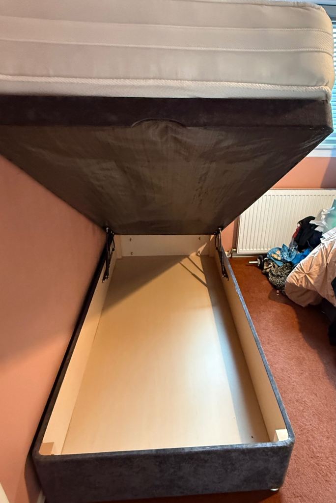 Posting for under a monthSingle Ottoman bed with mattress and headboard