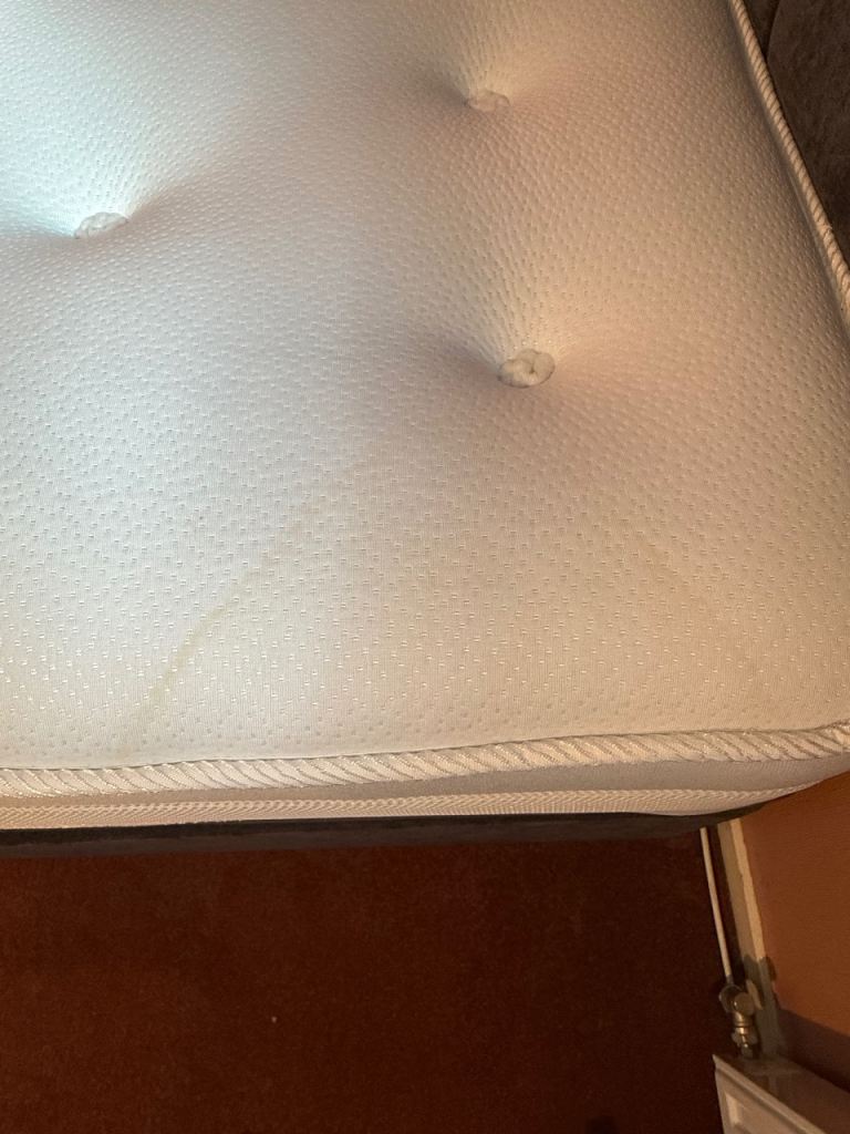 Like new used couple times as in spare room very good mattress wee mark where water was spilled £250 ono