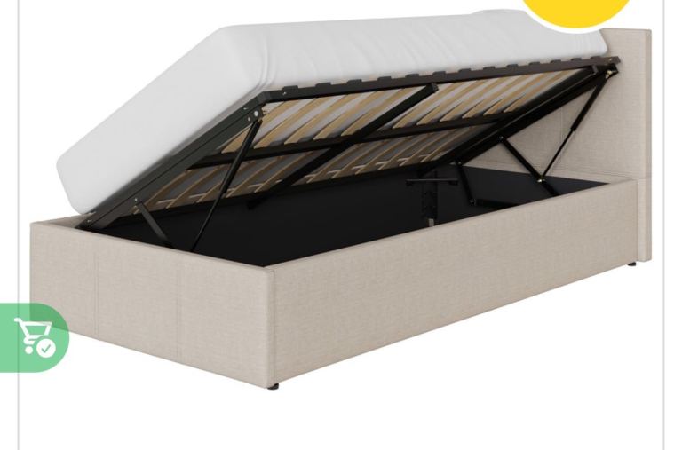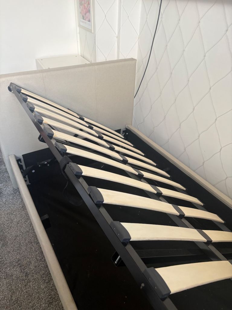 Single ottoman bed with natural (beige) headboard. Bought for £170 last march. No mattress. Selling for £100 ono