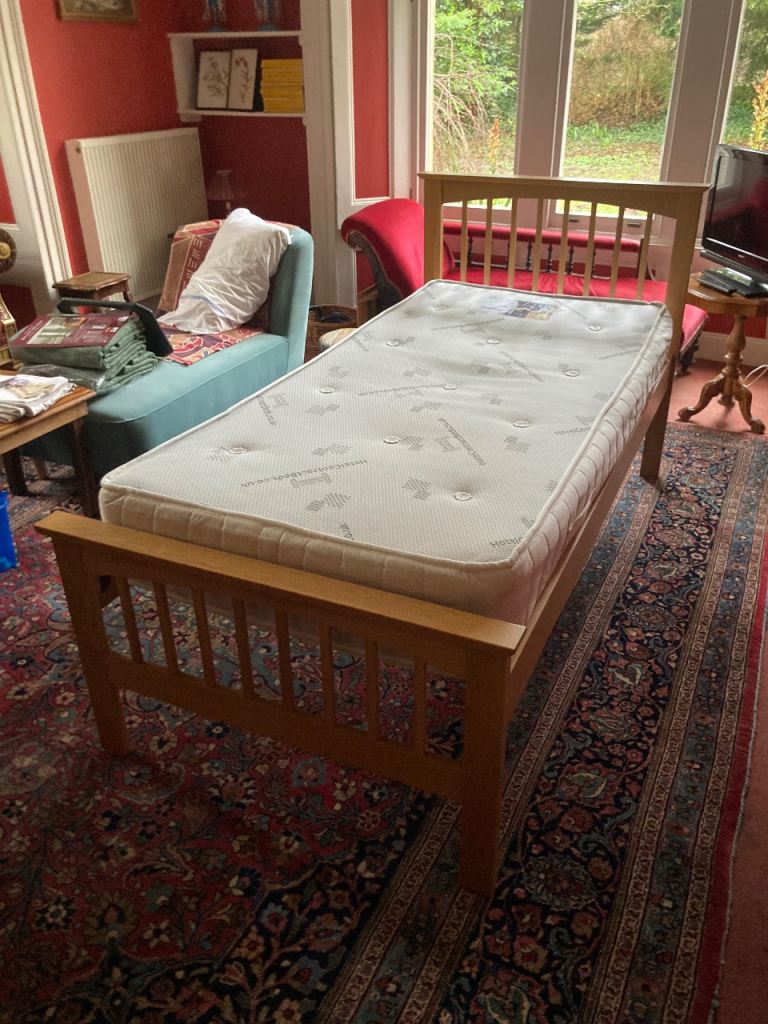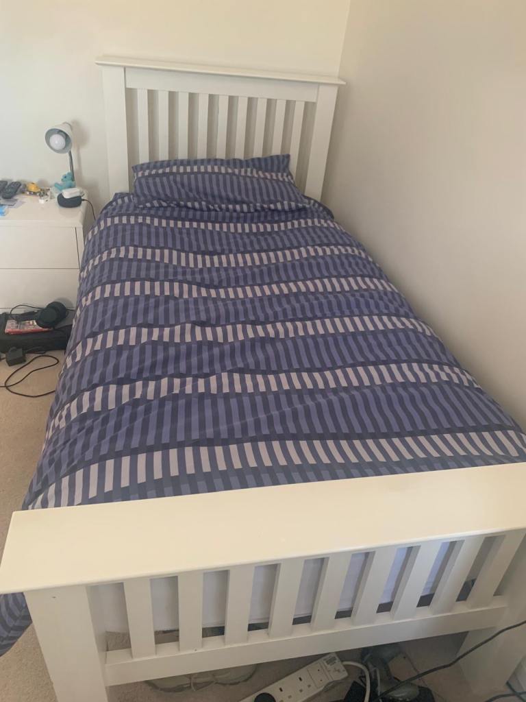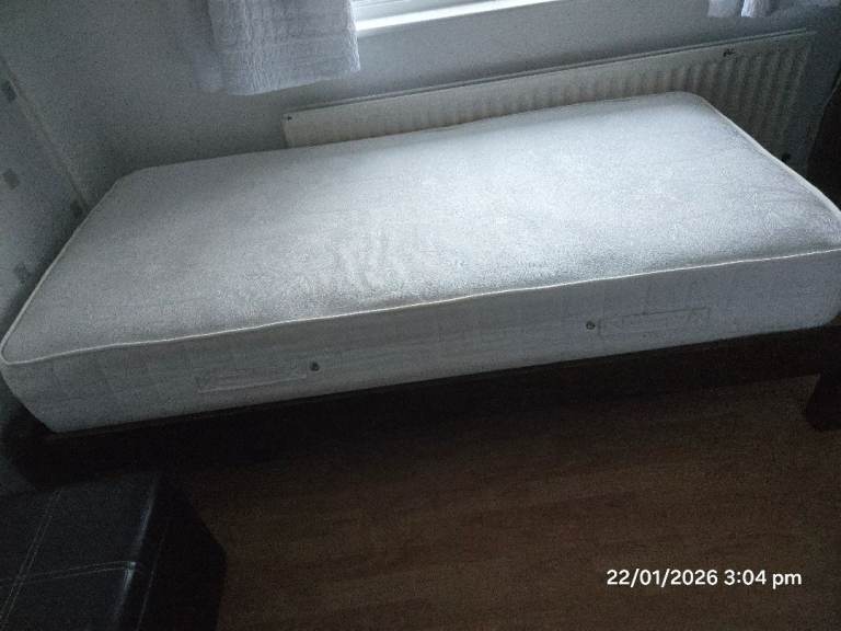 Posting for 3+ yearsSingle solid pine bed frame & memory foam mattress – very good condition
