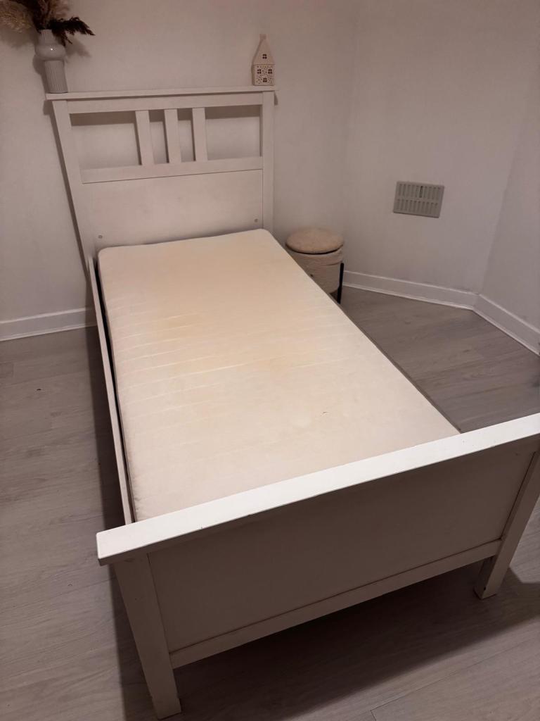 Solid White Wooden Single Trundle Bed (additional single bed below frame, for guests, kids sleepovers).