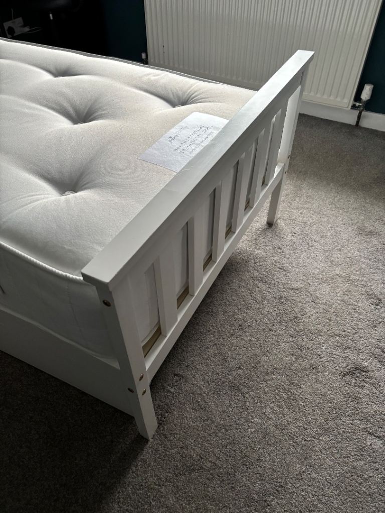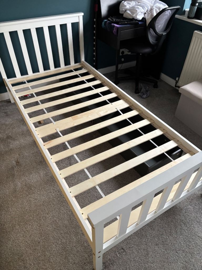 Posting for 1+ monthsSingle white wooden bed