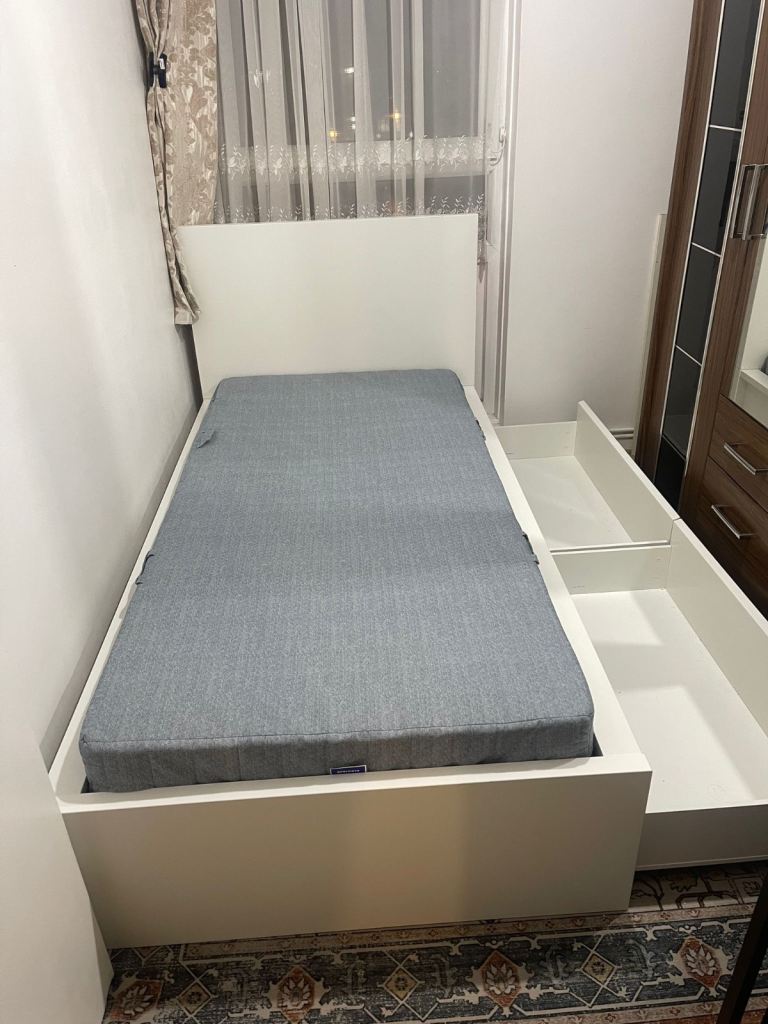 Small single bed hardly used with 2 drawers, mattress and headboard