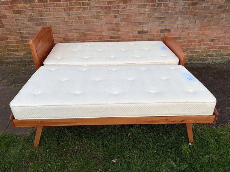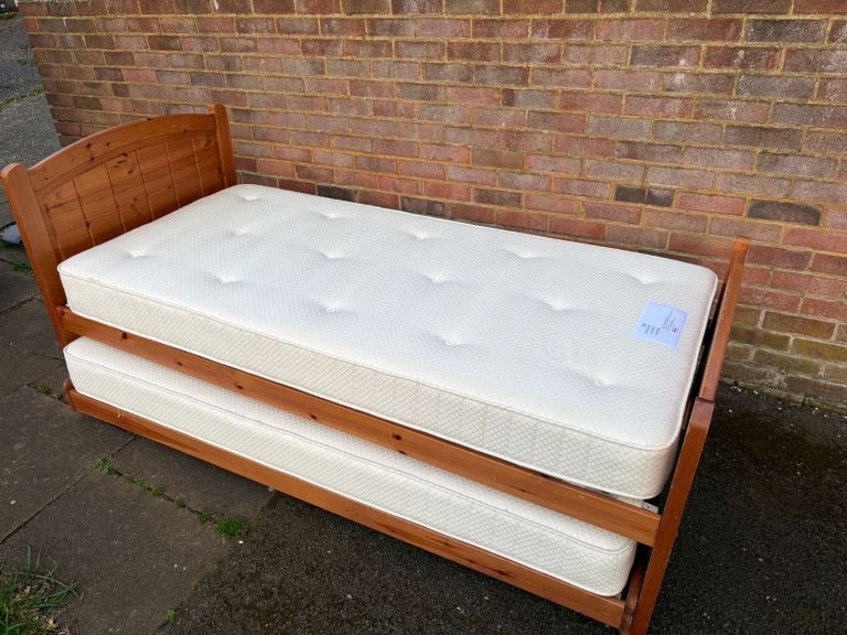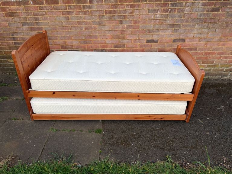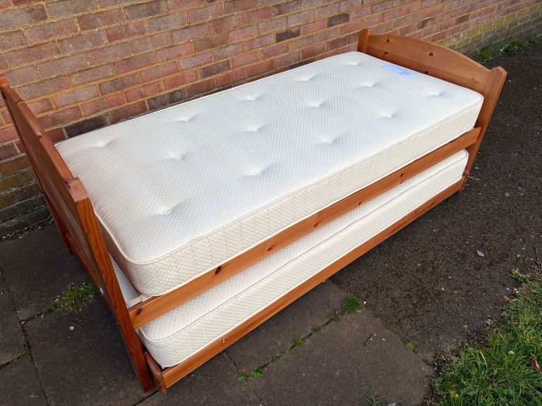 Solid pine single bed with pull out bed and mattresses