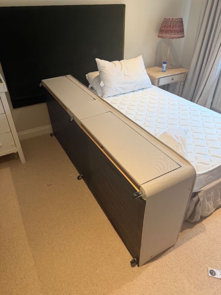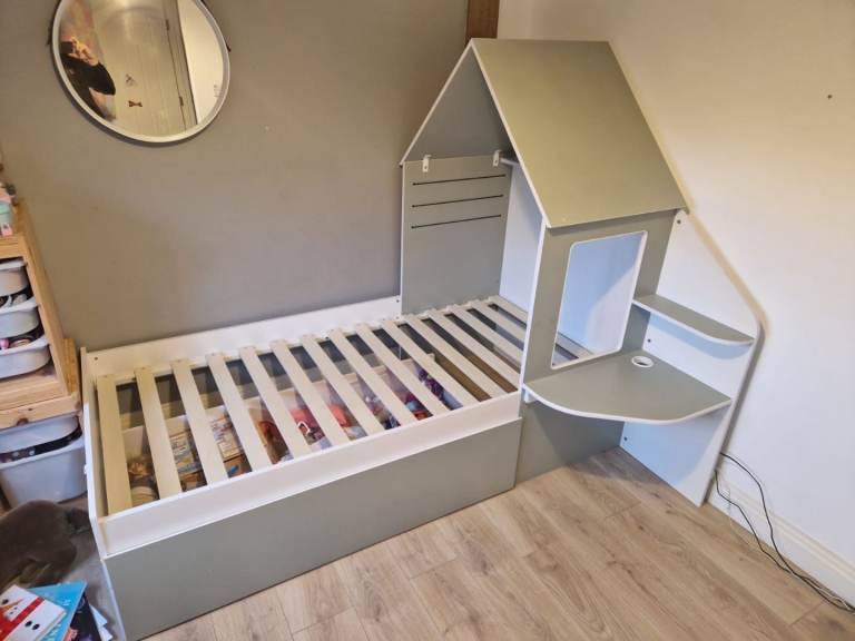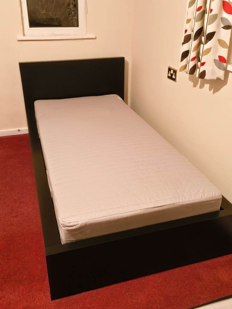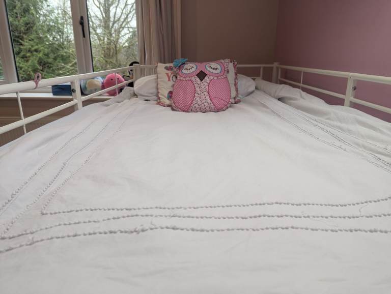 Excellent condition solid pine single bed with mattress (if wanted). Can be delivered locally, dismantled, without mattress.
