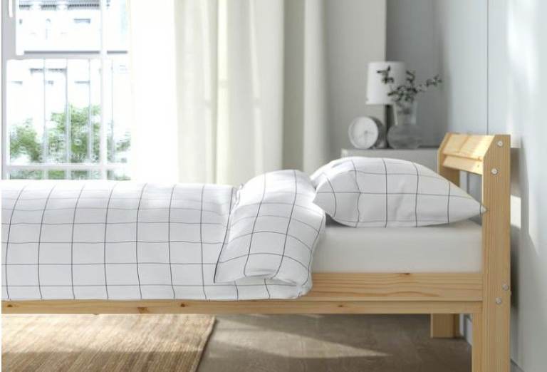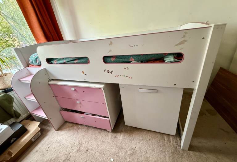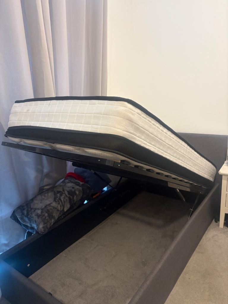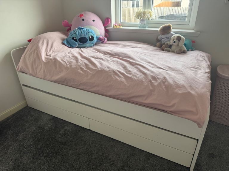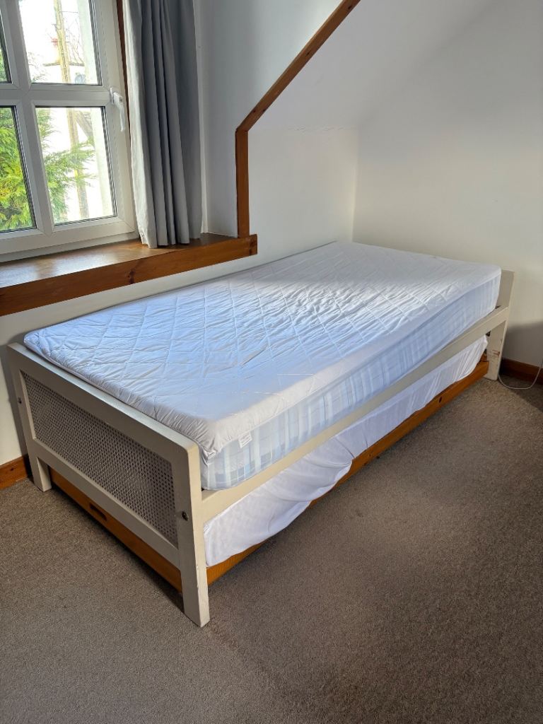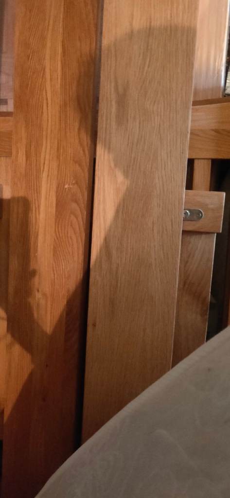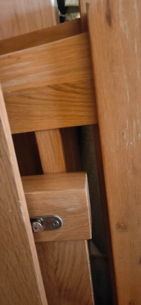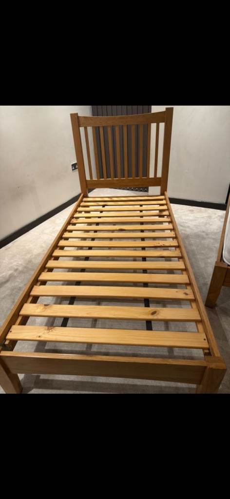 This bed is dismantled and very strong comes with all the screws , heavy as it is solid wood . Not thin slats, thick frames . No scratches or dents very clean.. like new , Collection only.