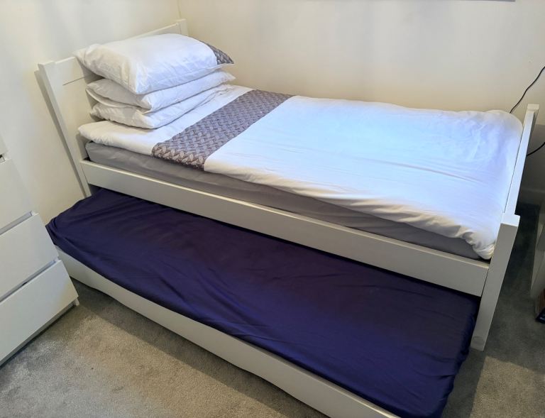 Single bed with 2nd Single bed on rollers sits perfectly underneath