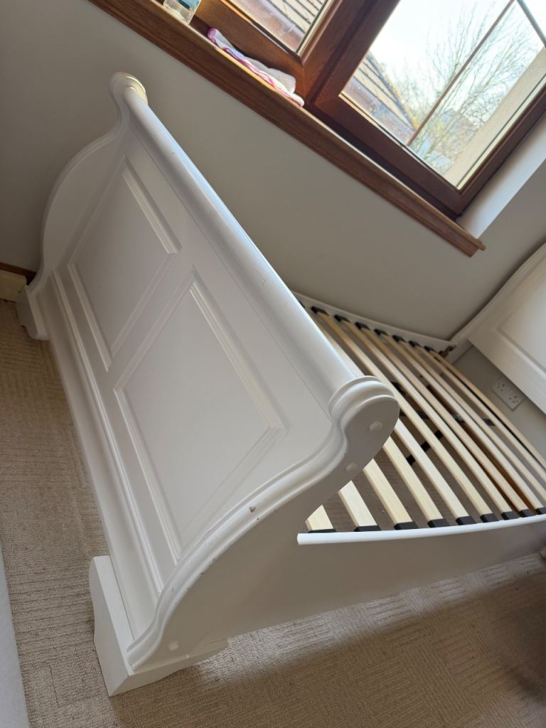 Solid slated sleigh bed