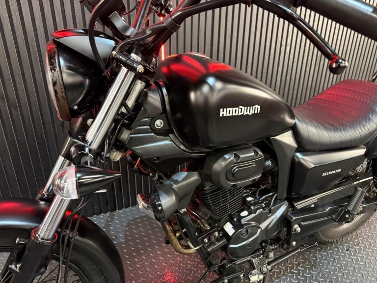 Black, 24/7 ONLINE PURCHASE AVAILABLE - This 2021 Sinnis Hoodlum 125 is the ultimate entry-level cruiser, finished in a classic and mean-looking Matt Black. With only 5,049 miles on the clock, this bike is in overall good condition and has been well-maintained. It comes complete with two original keys and has been professionally prepared for its next owner with a recent general inspection, a new oil filter, and a fresh oil change. For a rider looking for a ''big bike'' look on a learner-legal budget, this Hoodlum is ready to hit the road. The Sinnis Hoodlum is specifically designed to provide a comfortable, feet-forward cruising experience that mimics the style of a much larger American V-twin. It is powered by a 125cc air-cooled, 4-stroke engine that is fuel-injected and Euro 5 compliant, making it incredibly economical and easy to run. The engine is tuned for smooth, linear power delivery, which is perfect for gaining confidence in urban traffic or enjoying a relaxed weekend ride through the countryside. What sets the Hoodlum apart from other 125cc bikes is its ''long and low'' stance. It features a low seat height of just 710mm, making it exceptionally accessible for riders of all heights and providing a planted, stable feel.***Rest assured, your new bike includes a 3-month warranty (extension options available) and is guaranteed to have at least 6 months remaining on the MOT. Making your purchase simple: Explore our flexible finance plans and benefit from our affordable nationwide delivery service. Important Note on Viewing: Stock moves quickly! If you are planning to view a particular model, we kindly ask that you call us first to confirm its availability and avoid any disappointment***, 1 owners, 2 keys, ABS, Centre Stand, Electric start, Rear Hugger, Stainless Exhaust, Please visit our website to buy online, apply for finance or find out about our delivery prices.