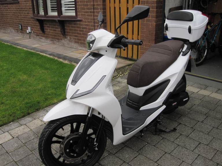 Immaculate condition 2023 Sinnis Connect scooter with 2,834 miles. I bought this for a run around, after selling my motorbike. Having always had Japanese machines, I have been pleasantly surprised by how good it is. The 16" wheels give a very stable ride.