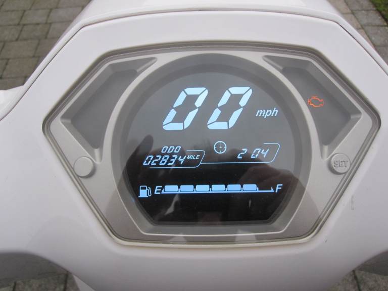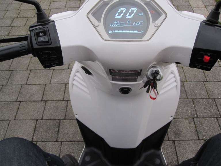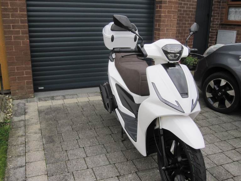It has a 125cc air cooled engine capable of 60 mph, 16" wheels and returns over 80 mpg. It has a top box, under seat storage, digital display, steering lock and a usb charging port. I am the second owner and it has done just under 2900 miles. It comes with owners manual and tool kit