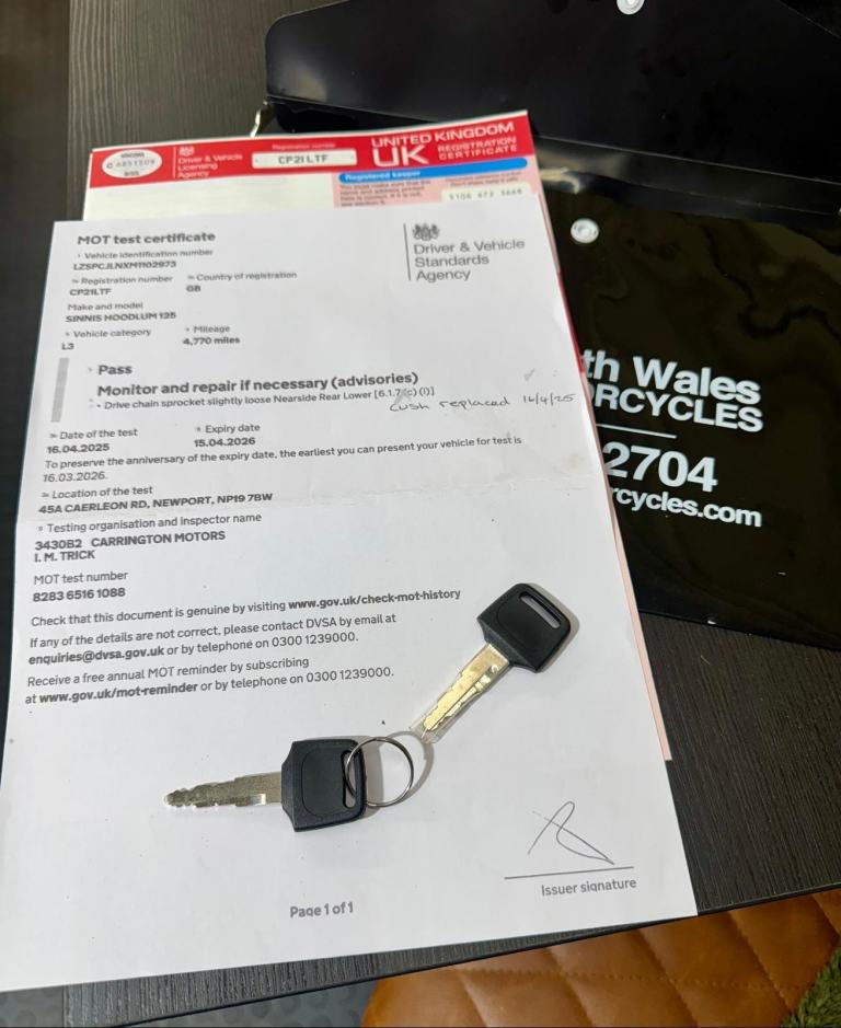 Sinnis Hoodlum 125cc / 2021 model / just 4778 miles / 5 owners from new / MOT April 2026 / service prior to sale / HPi clear