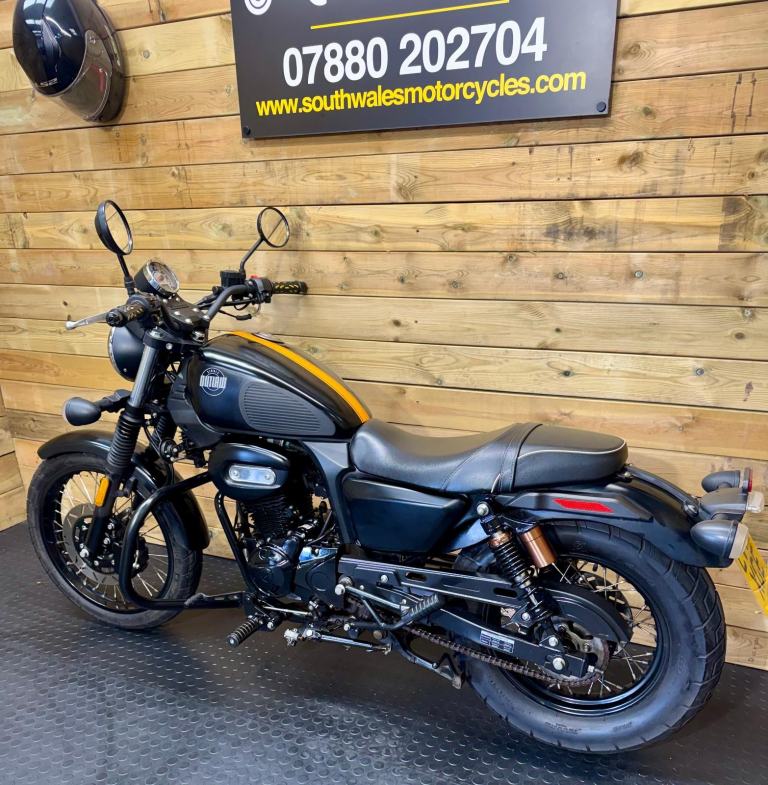 The Sinnis Outlaw 125 is a learner-friendly, Euro 5-compliant custom cruiser featuring a 124.8cc single-cylinder 4-stroke engine, producing 7.8kW (10.5 bhp) and reaching speeds around 60-65 mph. Known for its Harley-Davidson Sportster-like styling, low 141kg weight, and comfortable, low-seat riding position, it is an ideal, stylish commuter for new riders!