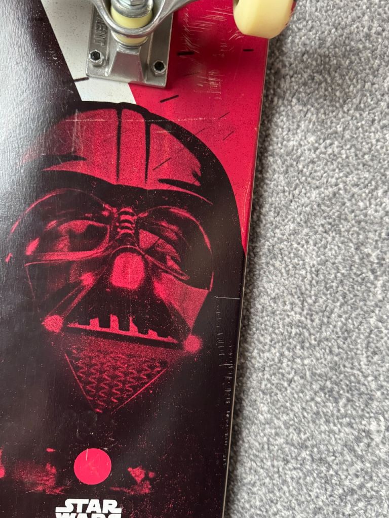 Darth Vader skateboard , has not been used only been put on the wall for decoration. One small scratch