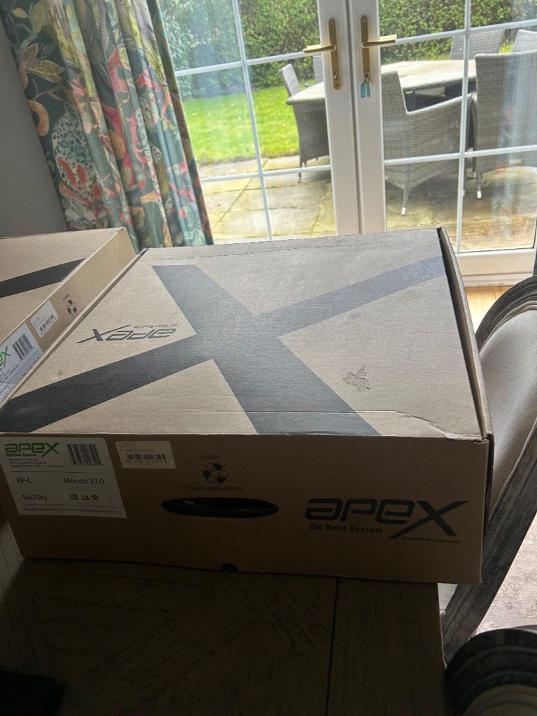 Apex ski boots in box with all accessories and papers etc. Used once for an hour at indoor ski centre - but with the liners from my other boots so those are new and unused.