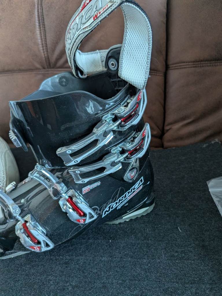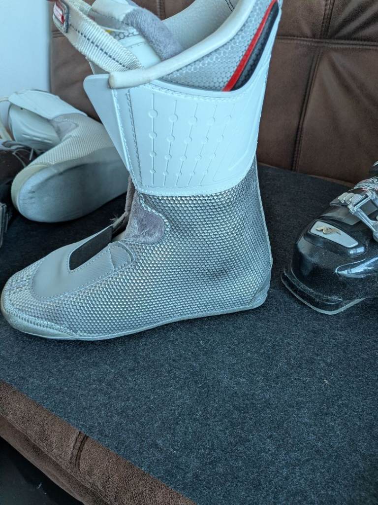 Nordica SpeedMachine 105 W ladies Ski boots . ( Size 25.5) Which is roughly a ladies size 6 (39) They have lovely extra warm inner boots. Worn only for about 4 weeks in total. Wrong size purchased. Super comfy/ warm. Insoles brand new as I got a custom fit superfeet sole made.