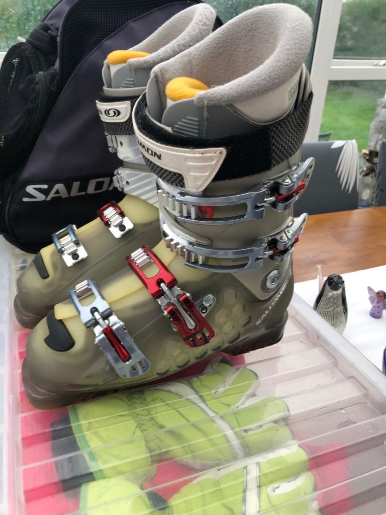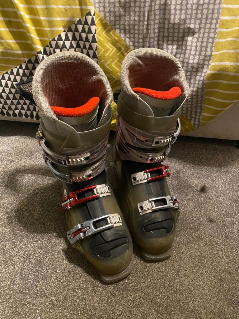 Rossignol ski boots size 28.5 ( approx UK SIZE 10.5 ) c/w boot protector which can be fitted when walking off the snow.