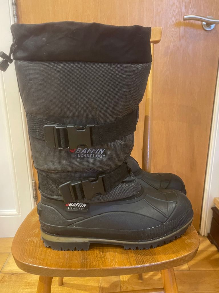 Baffin boots for sale. UK men’s 11, US 12. Used, but only for one or two trips. Roomy boot to be worn with thick socks. Practically no wear, just a few mud marks.