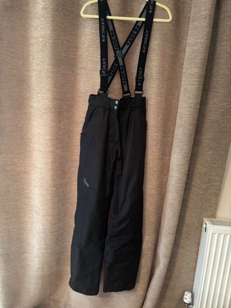 Mountain warehouse black ski trousers/salopettes with removable braces.
