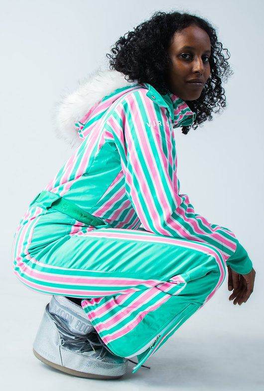 Our first ever ski suit design we came up with at Viridis! A classic pin stripe for the cute girls looking for a soft and classy retro look.