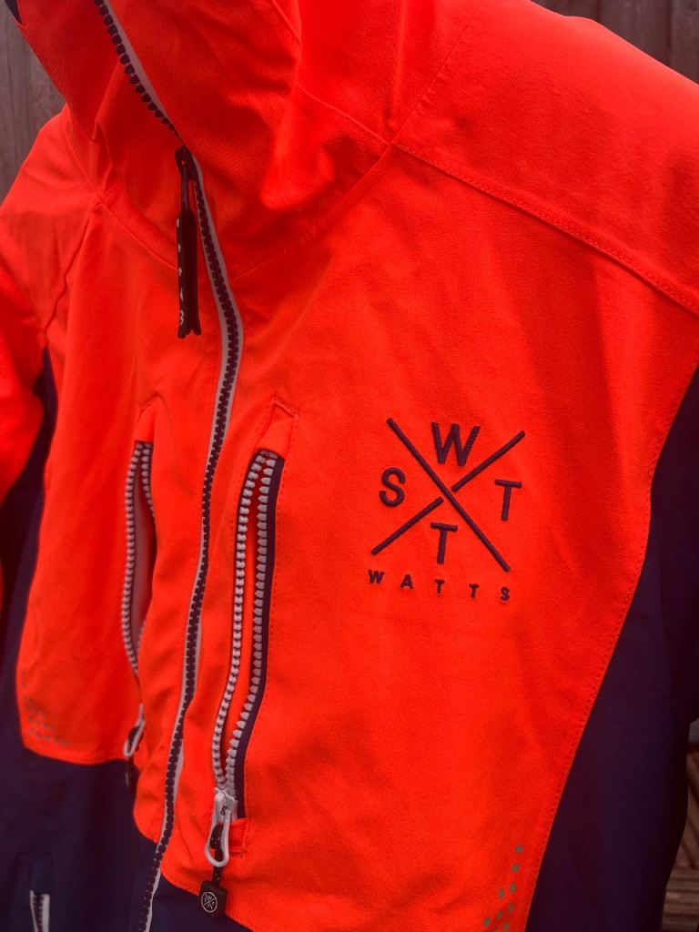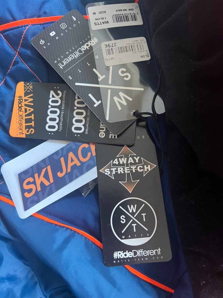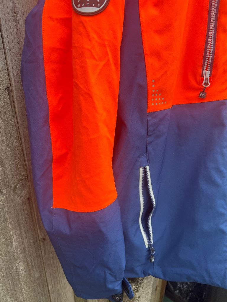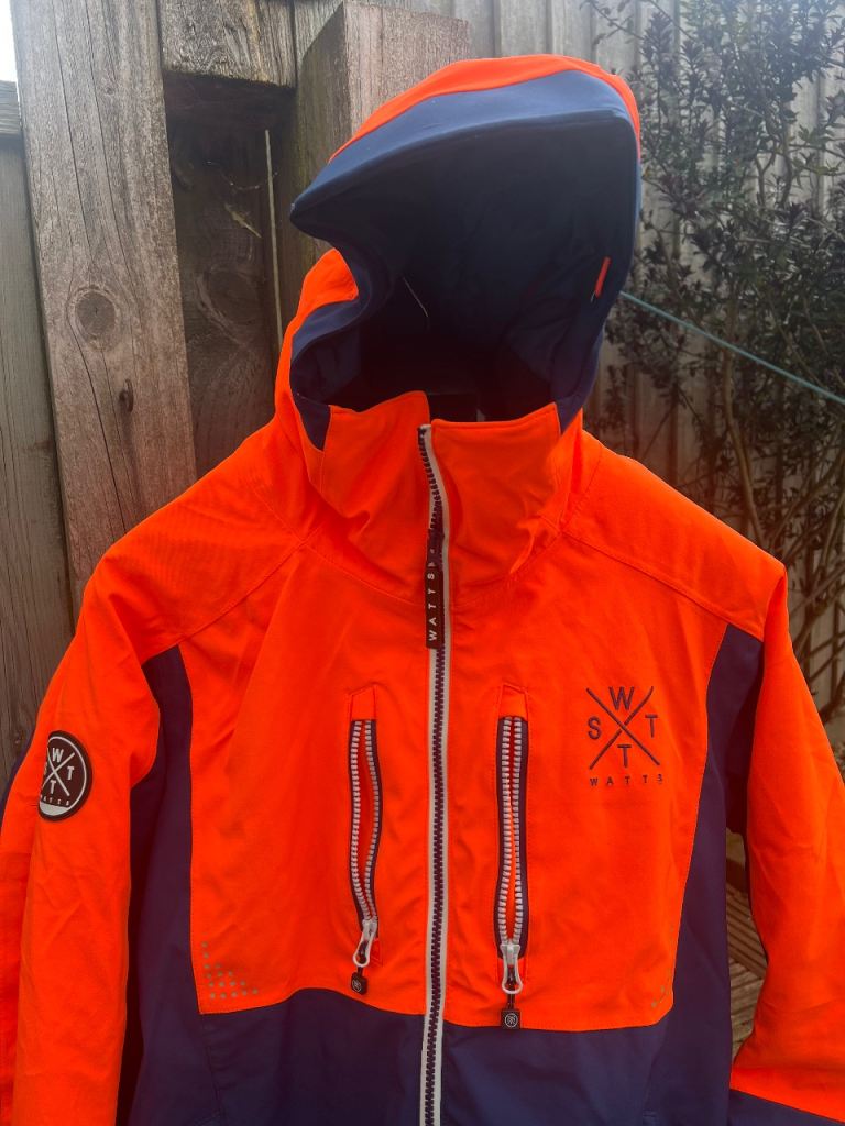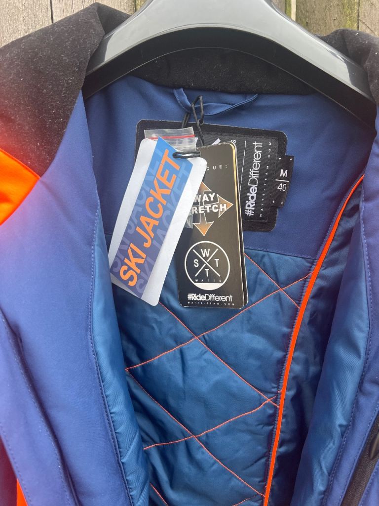 Watts waterproof,warm high end quality Ski jacket and matching trousers , navy blue and orange, as new with labels worn 1 day , excellent condition
