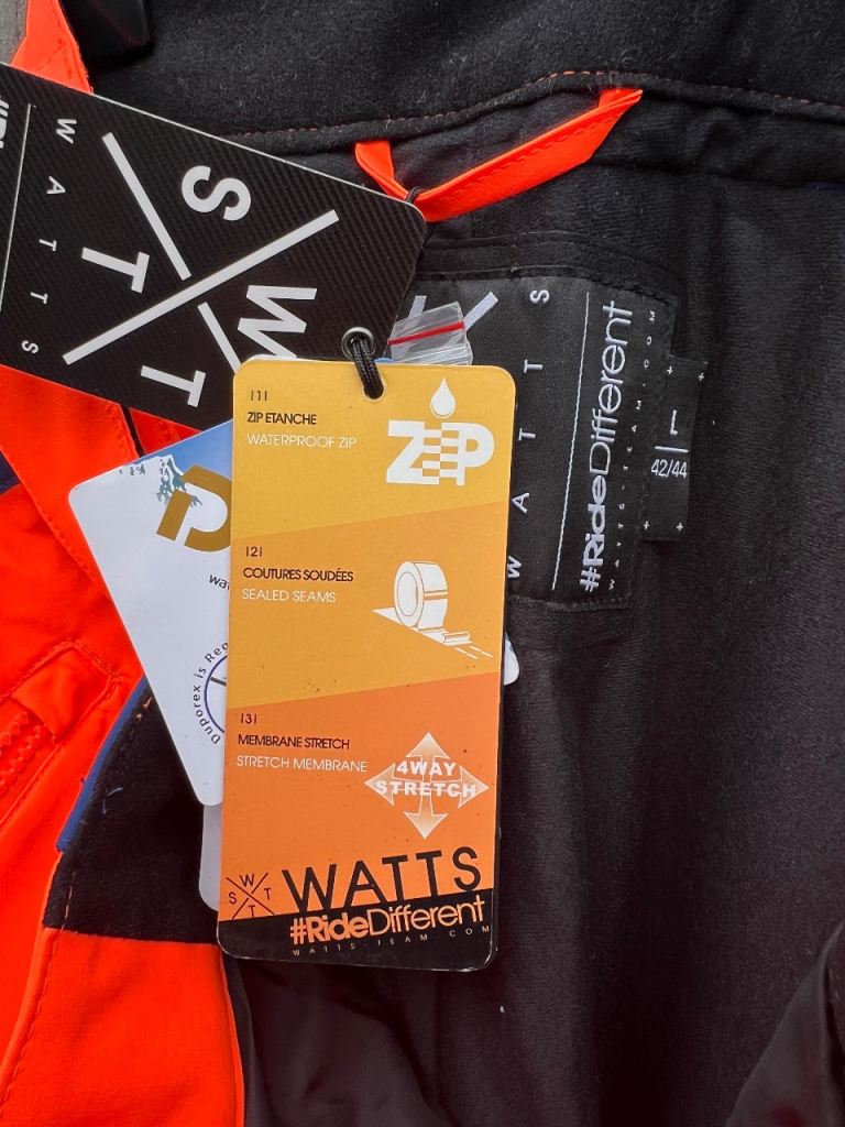 Watts waterproof and warm high end ski trousers , plenty of pockets and vents , size large , worn 1 day and have a small black mark on rear as per photo, otherwise excellent condition