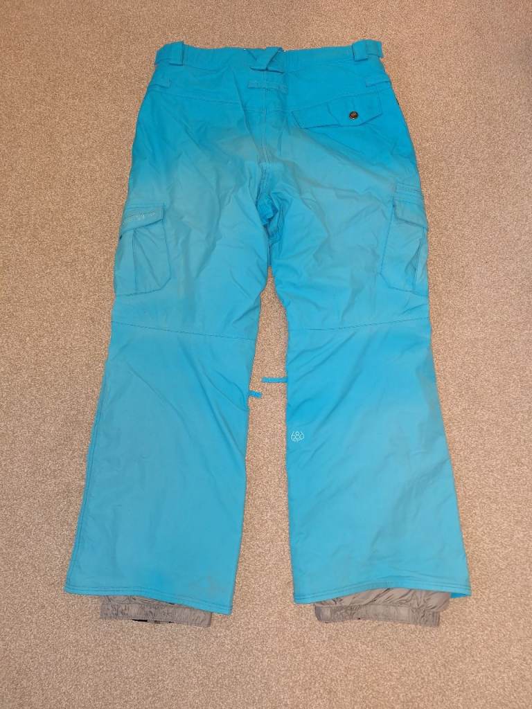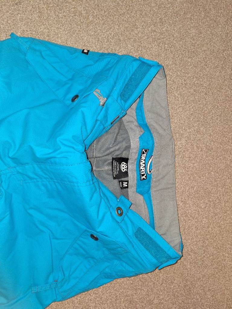 686 Smarty mens skiing/snowboarding trousers size Medium (34"/36"). Bright blue in colour. These are very well made from a tough material with fully taped seams. They are fully waterproof and very breathable. They have an elasticated powder skirt inside the bottom of each leg. There are plenty of zipped and velcro pockets on these trousers. These trousers have a zipped in separate pair of grey fleece trousers, that can be left fitted for the coldest days or taken out and used as fleece trousers to lounge about in the evenings. These have only been used 3 times and are in perfect condition. Cost when new £180.