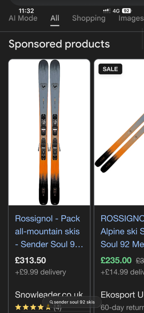 Brilliant model of ski, accidentally clicked the wrong size! Never used so an excellent deal for a brand new set of skis.