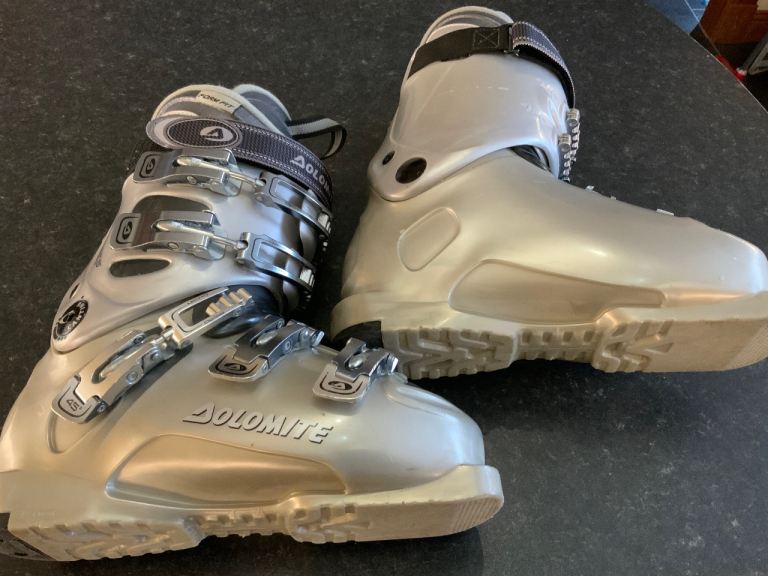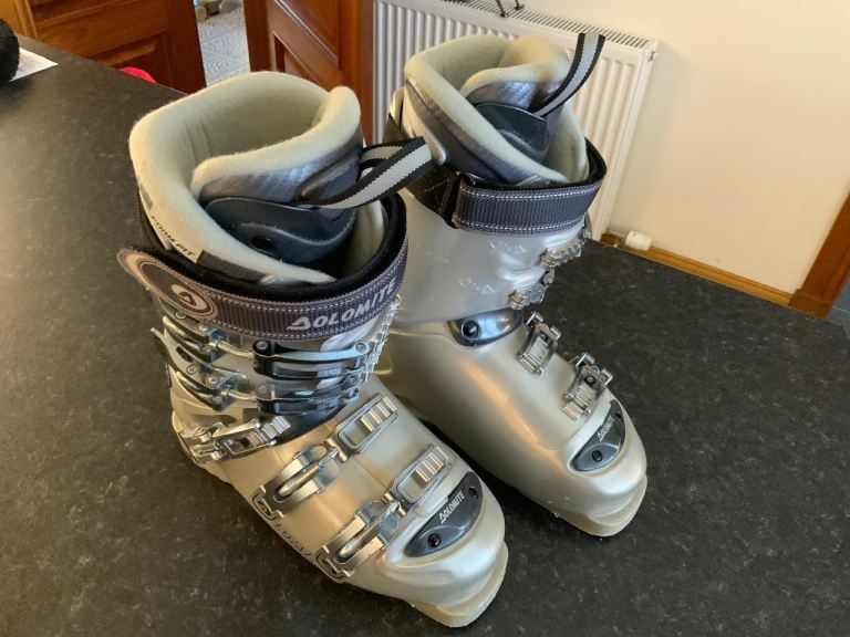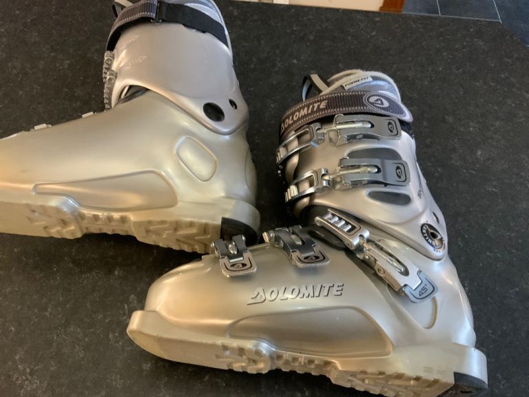 Grey dolomite ski boots and ski boot bag, size 4, these boots have 5 buckles , one is at the ankle for extra support.