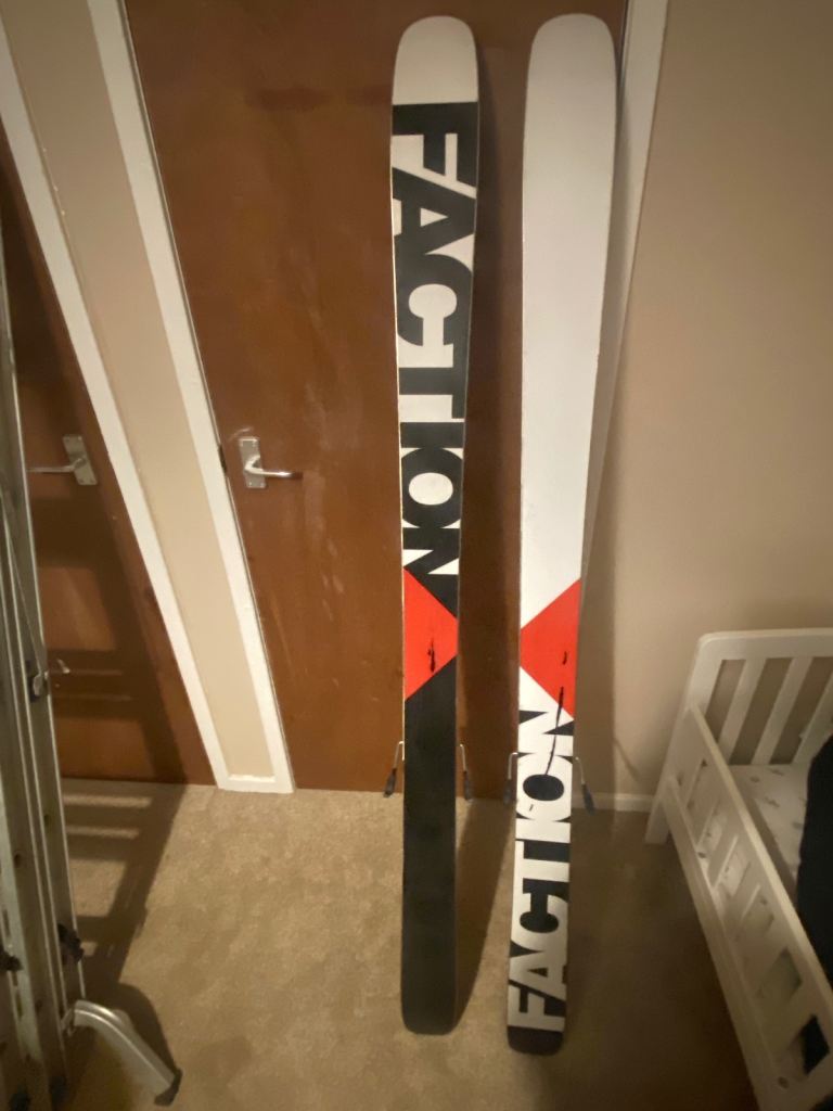 These are 176cm Faction Soma twin tip skis (£680 brand new) with Marker Griffon bindings(£210 brand new). I also have Atomic Magna Hawx (cost£220 brand new and only worn for a weeks holiday) size 27.5 (U.K 8.5), Dakine bag (cost £215 brand new again only used for a weeks holiday) this is sold as a bundle for £600 ovno however if looking to buy individually please contact me. It’s sad to see these go but as I now have a young child, I won’t be able to afford skiing holidays anymore.