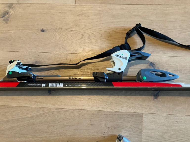 Currently fitted with Diamir Titanal mountaineering bindings.