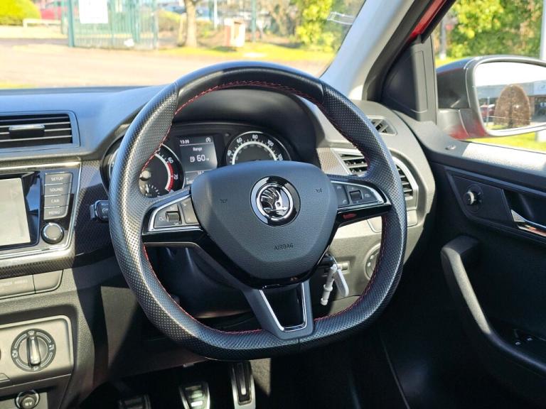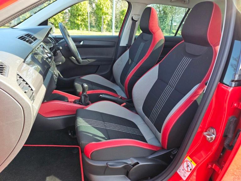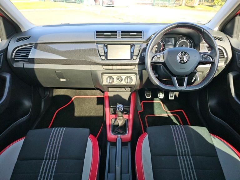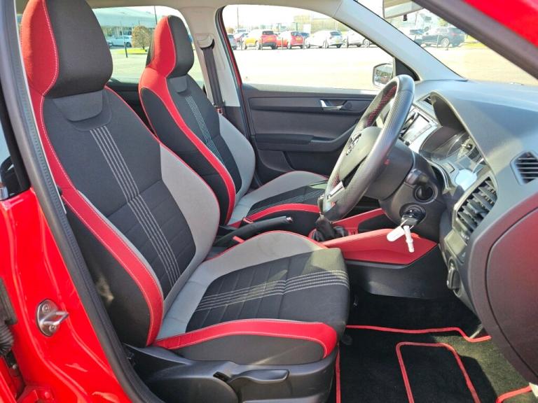 .ABS, Driver And Passenger Airbags, Electric Front Windows, Front Sports Seats, Immobiliser, PAS, Remote Central Locking, Front Seatbelt Pretensioners, Height/reach Adjust Steering Wheel, Heated Rear Window, Cloth Upholstery, Locking Wheel Bolts, Interior Light With Delay, Service Interval Indicator, Driver + Passenger Vanity Mirrors, Intermittent Rear Wash/wipe, Black Door Mirrors, Height Adjustable Driver's Seat, Body Colour Door Handles, Body Colour Bumpers, Parcel Shelf, Pollen Filter, Luggage Load Hooks, Height Adjustable Front Headrests, Driver And Passenger Side Airbags, Seatbelt Warning, Height Adjustable Headlamps, EDS, Multi Function Trip Computer, Leather Gearshift, 2 Height Adjustable Rear Headrests, Leather Handbrake, Passenger Airbag Deactivate Switch, Front Reading Lights, Electrically Adjustable And Heated Door Mirrors, Body Coloured Rear Spoiler, Exterior Temperature Gauge, Rear Courtesy Light, Tinted Rear Windows, Black Radiator Grille, Two Rear Outer Seat Isofix Location Points, Curtain Airbags, Alarm With Interior Monitoring, Hydraulic Brake Assist (HBA), Height Adjustable Passenger Seat, Boot Stowage Box, Chrome Pack - Fabia, 3x3 Point Rear Seatbelts, Tinted Windscreen, Bluetooth System, Cargo Area Storage Tray, 60/40 Split Folding Rear Seat, Auxiliary Socket For External MP3 Player, Folding Grab Handles, 1.5L Bottle Holder In Front Door Panels, Ticket Holder, DAB Digital Radio, Tyre Pressure Monitor, Rear Storage Trays, USB Interface, LED Daytime Running Lights, Rear Diffuser, Lower Glovebox Cover, SD Card Slot, Illuminated Door Sill Inserts, ESC With ASR, Floor Mats With Red Stitching, 3 Spoke Leather Multifunction Sports Steering Wheel With Red Stitching, Front Assistant Collision Mitigation, Black Decorative Inserts, Fixed Panoramic Sunroof With Black Roof Rails, Arkamys Surround Sound Pack - Fabia, 6.5"" Touchscreen, SmartLink, Bolero Radio, Pearl Grey Headlining, Pearl Grey Carpets, Umbrella Under Front Passenger Seat