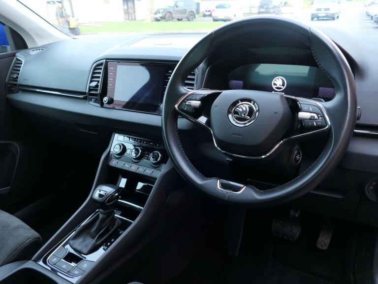 Introducing this 2023(72), Skoda Karoq SE L 1.5 TSI 150PS DSG automatic finished in Energy Blue paint with 18'' Miran Black alloy wheels. Supplied by ourselves from new and benefits from Simpsons Skoda service history. This example benefits from the optional detachable tow bar with adaptor and the optional panoramic sunroof, which fills the cabin with natural light and fresh air to enhance every journey. Advanced driving assistance features include cruise control with a speed limiter, front assist and light assistant for added convenience and confidence on the road. Front and rear parking sensors work alongside the rear view camera to make manoeuvring simple by providing clear visual and audible guidance. Satellite navigation proves invaluable on longer journeys, while the heated steering wheel and heated front seats deliver welcome comfort during the colder months. DAB radio allows easy access to local stations, with seamless smartphone connectivity available via Bluetooth, Apple CarPlay and Android Auto. Dual zone air conditioning maintains your ideal cabin temperature, while drive mode select lets you tailor the vehicles performance to suit your driving style. For added practicality, two USB C ports keep your devices charged on the go. ULEZ compliant. Part exchanges welcome. As a family-owned business with over 80 years of experience, the Simpson family has looked after the motoring needs of Lancashire since 1944. We are driven by customer satisfaction and all our cars are carefully prepared to our own and Skoda's exacting approved standards, both mechanically and cosmetically, additionally with a minimum of 12 months warranty, 12 months breakdown roadside assistance and minimum 6 months MOT. For more information, to book your test drive or to request a personalised walk-around video of a vehicle, please contact our team at Simpsons Skoda Colne.