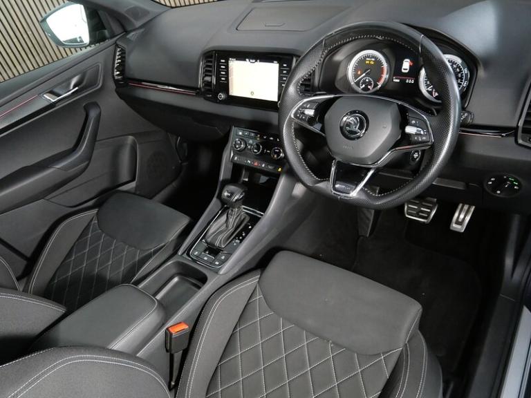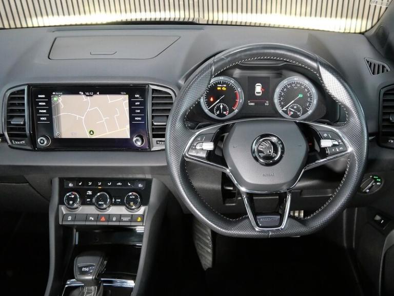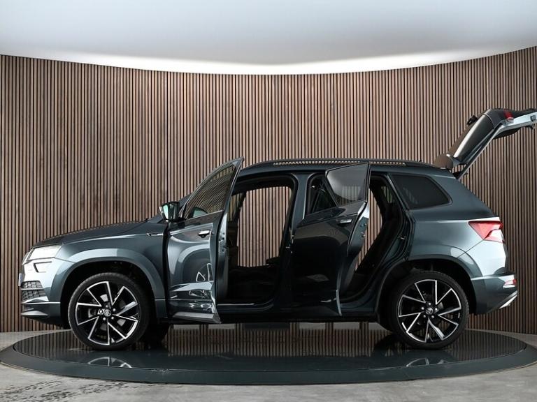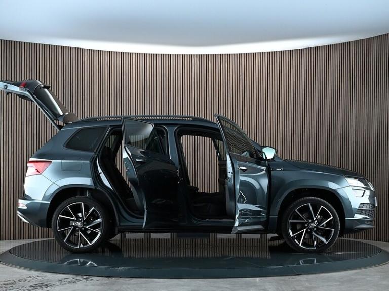 We are pleased to welcome this fantastic Skoda Karoq 1.5 TSI ACT SportLine SUV which is equipped with Panoramic Sunroof & Rear View Camera. Two owners from new with Full Skoda Service History (last serviced 26/01/2026 @ 16,030 miles). Displayed here in Quartz Grey Metallic with Heated Black SPORTLINE Fabric Upholstery. Upgrades and features include: 19"" Vega Anthracite Alloy Wheels, Panoramic Sunroof, Apple CarPlay, Android Auto, Rear View Camera, Front and Rear Parking Sensors, Heated Front Seats, Wireless Charging, Privacy Glass, Electrically Operated Boot, Keyless Entry and Start System with SAFE System, 3 Spoke Leather Sports Heated Multi-Function Steering Wheel, Electrically Adjustable Heated Folding Auto-Dimming Door Mirrors, Full LED Headlights with Adaptive Front Light System and LED Daytime Running Lights, LED Interior Light Package and SKODA Welcome Light, Amundsen Touchscreen Satellite Navigation System, Colour Multifunction Trip Computer, SmartLink Plus, DAB Digital Radio and Bluetooth.Prices checked daily to ensure the most competitive value. Personalised video walkaround available on request. Open 7 days a week.If you have any questions regarding the history, condition, or specification of this vehicle, please contact a member of our sales team who will be happy to assist..Quartz Grey,SPORTLINE Fabric - Black, 12V Power Socket in Boot, Amundsen Touchscreen Satellite Navigation System, Bolero Radio, Care Connect - eCall, Care Connect - Remote Access - 1 Year, DAB Digital Radio and Bluetooth, SmartLink Plus, USB C Port x 2 in Front Centre Console, Wireless Charging without Wireless Aerial Connection, Colour Multifunction Trip Computer, Cruise Control with Speed Limiter, Drive Mode Selection, Driver Fatigue Sensor, Parking Sensors - Front and Rear, Rear View Camera, TPMS - Tyre Pressure Monitoring System, Tyre Pressure Display, 19in Alloy Wheels - Vega Anthracite, Anti-Theft Locking Wheel Bolts, Black Roof Rails - Door Mirrors and Radiator Grille, Chrome Package Outside Aluminium Bar Around the Windows, Door Handles - Body Coloured, Electric Front and Rear Windows with Child Proof Lock, Electrically Adjustable - Heated - Folding - Auto-Dimming Door Mirrors, Heated Rear Windscreen, Light Assistant, Panoramic Sunroof, Privacy Glass, Protective Door Side Sills in Body Colour, Rear Diffuser, Scuff Plates in Door Sills, SKODA Lettering on Tailgate in Black, SportLine Badge on Front Fender, Sports Front and Rear Bumpers, Tyre Repair Kit, Welcome Animation with SportLine Logo, Automatic Headlight Control, Full LED Headlights with Adaptive Front Light System and LED Daytime Running Lights, Headlights - Washers, Rear Lights - LED, Third Brake Light, 2 Reading Lights Front - For Driver and Passenger, 3 Spoke Leather Sports Heated Multi-Function Steering Wheel, 4 Foldable Roof Handles with Clothes Hooks in Rear, Aero Front Windscreen Wipers with Intermitted Function, Air Conditioning - Climate Control Dual Zone, Air Vent Surrounds in Black, Aluminium Pedals, Black Roof Headlining, Boot Package - 2 Folding Hooks and Nets, Bottle Holders in Door Panel in the Front - 1.5 Litre Bottle - Driver and Passenger Door Panels, Cargo Element in Boot, Chrome Interior Door Handles, Decor Inserts in Dash and Door - Carbon - Piano Black, Electric Window Control Buttons in Black, Electrically Operated Boot, Foldable Hooks in the Boot, Front Centre Armrest with Storage Compartment - Rear Air Vents and 12v Socket, Front Door Step with Sportline Logo, Glovebox - Illuminated and Cooled, Heated Front Seats, Height Adjustable Driver and Front Passenger Seat, Ice Scraper, Illumination of Luggage Compartment, LED Interior Light Package and SKODA Welcome Light, Light and Rain Sensor with Auto-Dimming Rear View Mirror, Manual Lumbar Support for Front Seats, Net Programme in Boot, Non Smokers Package, Pen Holder, Pollen Filter, Reading Lights - Rear, Rear Boot Cover, Rear Seats Fixed, Retractable Parcel Shelf Attachable to the Tailgate, Safety Reflectors on Front Doors, Safety Vest Holder, SportLine Decorative Inserts with SportLine Badging, Storage Box in Upper Central Dashboard - Closed, Storage Compartment Below the Passenger Seat, Storage on Wheel Cover, Sun Visors with Illuminated Vanity Mirror, Textile Floor Mats, Three Rear Head Rests, Three-Point Seat Belts - Rear, Umbrella Under Front Passenger Seat, Power Steering, Airbags - Driver, Alarm with Interior Monitoring - Back Up Horn - Tilt Sensor and SAFE Function, Automatic Door Unlocking Incase of Crash, Automatic Fuel Cut Off Incase of Crash, Electronic Engine Immobiliser, Electronic Parking Brake with Auto Hold Function, Emergency Rear Braking Signal, ESC Electronic Stability Control incl ABS Anti Lock Braking System, Front - Head - Knee - Curtain - Front Side Airbags, Front Assist Radar, Height Adjustable Front Three-Point Seat Belts with Tensioners, ISOFIX Child Seat Preparation - Outer Rear, KESSY - Keyless Entry and Start System with SAFE System, Passenger Airbag with