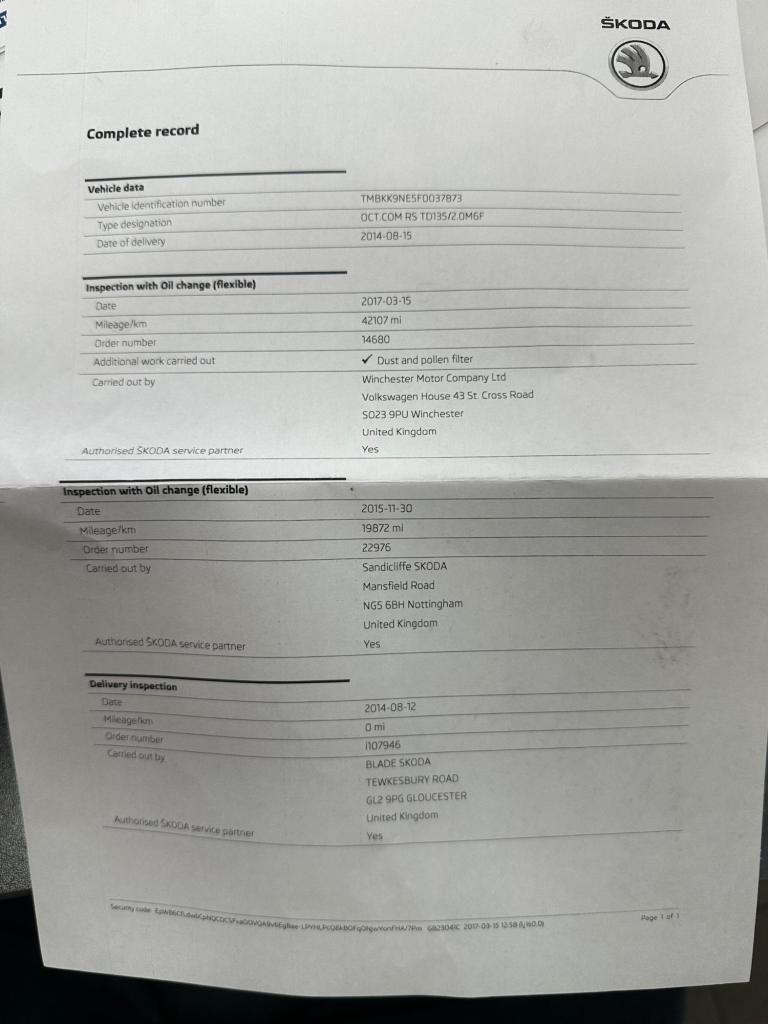 Basford motors ltd delighted to offer this stunning Skoda Octavia 2.0 TDI VRS Euro 5 (s/s) 5dr This Skoda Octavia TDI VRS from 2014 boasts a great Skoda service history including timing belt / water pump done at 79853 miles , with its last service completed on 2025-12-01 at 124,960 miles had (oil+oil filter+rear brake pads and discs), and has had only one previous owner from new well maintained , This 2.0 litre diesel model comes with a 3 month warranty and 12 months MOT provided on purchase, ensuring peace of mind. Notable features include Bi-Xenon headlights, rear parking sensors, Bluetooth connectivity, and dual zone climate control air conditioning, all designed to enhance your driving experience. All original manual books and 2 keys availableThe Octavia TDI VRS offers impressive performance with an acceleration of 0-60mph in just 7.9 seconds, while also delivering excellent fuel economy of 61 mpg, making it more economical than many similar vehicles. Its low CO2 emissions further contribute to its cost effectiveness. Furthermore, this model provides generous boot space, making it a practical choice for families and those needing extra room for luggage or shopping.