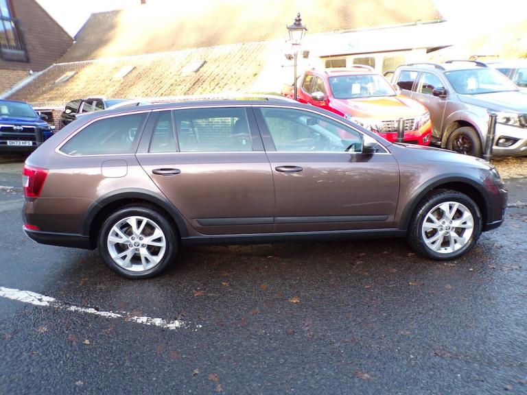 Only 56700 Miles from new with a full Skoda service history. 2 Owners from new. Finished in Topaz Brown metallic (cost option) with Brown leather and Alcantara interior. This Octavia Scout 4x4 features, Auto/DSG Transmission, sat/nav, park pilot, Bluetooth phone connection, cruise control, dual zone climate control, heated seats, sun protection glass, isofix, Roof rails, 17"" alloy wheels. Premium warranty included. 2 keys and book pack present and is in lovely condition throughout. Make it, The Smart Choice. Car Guru's Top Rated Dealer 2018-2019-2020. AutoTrader 5.0 star reviews. Google 5 star reviews. MAKING IT THE SMART CHOICE. This, and all of our Used Double Cab Pickup Trucks are based at our Northchapel Branch in West Sussex. So if you are looking for a quality used pick up for sale, don't hesitate to call us on 01428 707004. Please call us before you visit to confirm vehicle availability and location.. 17in Alloy Wheels - Polar,3 Spoke Leather Sports Multi-Function Steering Wheel,ABS - Anti-Lock Braking System,ASR - Anti Slip Regulation,Air Conditioning - Climate Control Dual Zone,Airbags - Driver,Airbags - Driver Knee,Airbags - Front Passenger,Airbags - Front Side,Airbags - Passenger Deactivation Switch,Alarm with Interior Monitoring,Anti-Theft Locking Wheel Bolts,Armrest - Front with Storage,Audio Power Output 4x20w,Auto Dimming Rear View Mirror,Automatic Fuel Supply Cut-Off in Case of Accident,Automatic Post Collision Braking System,Aux- In,Black Roof Rails,Bluetooth,Bluetooth - Audio Streaming,Body Mouldings - Black,Bolero Touchscreen Infotainment System,Bumpers - Body Coloured,Central Locking - Remote,Child Safety Switch,Cruise Control,Curtain Airbags,DAB Radio,DSR - Driver Steering Recommendation,Daytime Running Lights,Door Handles - Body Coloured,Door Handles - Interior in Chrome,Door Mirrors - Silver,Driver Alert with Fatigue Sensor,Driving Mode Selection,EBV - Electronic Brake Variator,EDS - Electronic Differential System,ESP - Electronic Stability Programme,Electrically Adjustable and Heated Door Mirrors,Electro-Mechanical Power Steering,Electronic Engine Immobiliser,Engine Guard,Exterior Temperature Gauge,Floor Mats,Front Fog Lights,Front and Rear Electric Windows,Glasses Storage Compartment,Glovebox - Air Conditioned,HBA - Hydraulic Brake Assist,HHC - Hill Hold Control,Head Restraints - Height Adjustable Front and Rear,Headlights - Coming-Leaving Home,Headlights - Halogen,Height and Reach Adjustable Steering Wheel,High Level 3rd Rear Brake Light,Humidity Sensor,ISOFIX Child Seat Preparation - Outer Rear,Illuminated Luggage Compartment,Lane Assistant,Light Assistant,Load Through Provision,Luggage Compartment - Lashing Eyes,MDI - Multi Device Interface,MSR - Motor Slip Regulation,Off-Road Button,Parking Sensors - Rear,Pollen Filter,Rain Sensor,Rear Mudflaps,Rough Road Package,SD Card Reader,Satellite Navigation - Amundsen System,Scout Body Styling - Front and Rear Bumper,Scout Body Styling - Sills,Scout Body Styling - Wheel Arches,Seatbelt Warning - Drivers,Seats - Backrest Release From Luggage Compartment,Seats - Drivers Height Adjustment,Seats - Front Lumbar Support,Seats - Front Passenger Height Adjustment,Seats - Split Folding Rear - 60-40,Speakers x8,Steering Wheel - Multifunction Controls,Storage - Pockets on Rear of Front Seats,Sunset Glass,TPMS - Tyre Pressure Monitoring System,Telescopic Front Headlight Washers,Tinted Windows,Trip Computer - Maxi-Dot - Colour,Tunnel Light,Tyre Repair Kit,USB Connection,Under Body Protection,Vanity Mirrors - Front,XDS Advance Stability Control